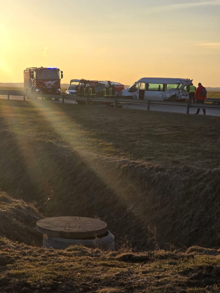 (papildināta ar foto) Uz Liepājas šosejas Pienavā notikusi divu mikroautobusu sadursme