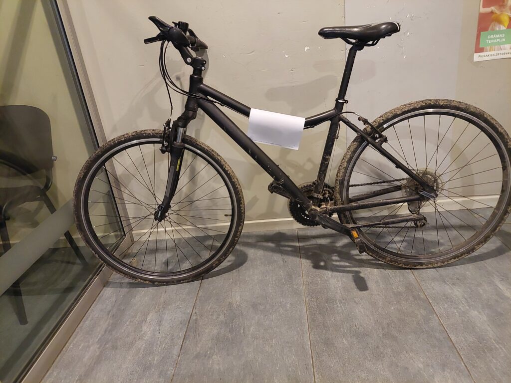 Valsts policijas Kurzemes reģiona pārvaldes telpās Liepājā, Bāriņu ielā 3 nogādāts velosipēds melnā krāsā, kas atrasts Liepājā, Skuju ielā, portālu “ReKurZeme” informē Valsts policijas sabiedrisko attiecību nodaļas vecākā speciāliste Madara Šeršņova.