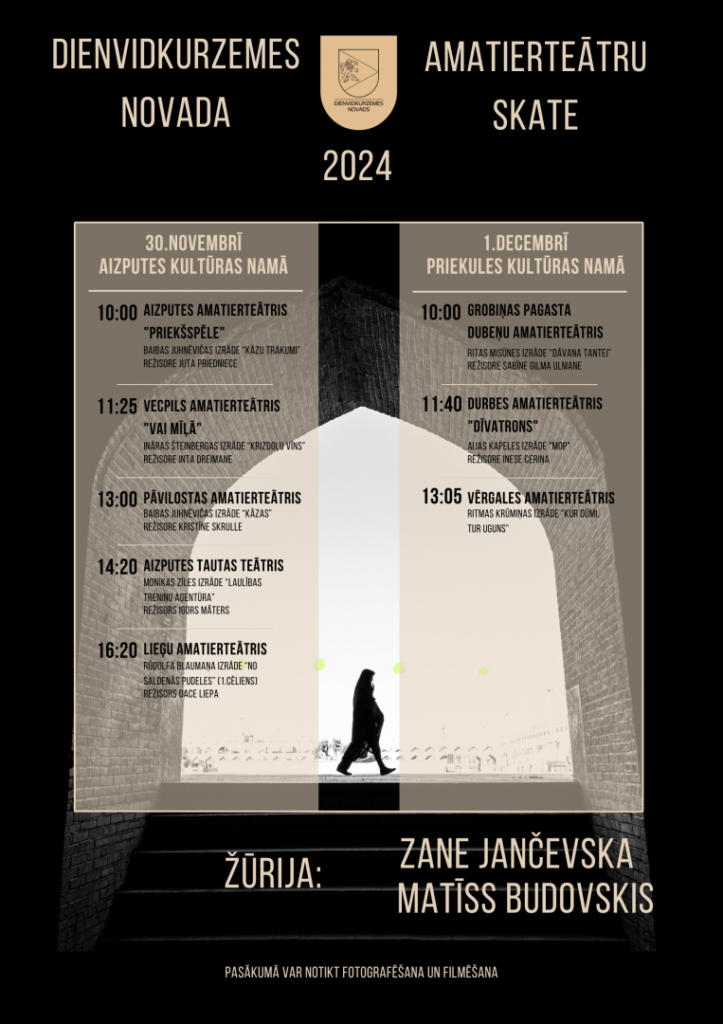 Aizputē un Priekulē kolektīvu sagatavotās izrādes vērtēs aktrise un etnomuzikoloģe Zane Jančevska un Latvijas Nacionālā teātra aktieris un režisors Matīss Budovskis.