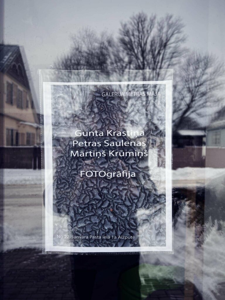 Šoreiz mākslinieki Gunta Krastiņa, Petras Saulenas un Mārtiņš Krūmiņš ir satikušies kopējā izstādē ”FOTOgrāfija”, kas skatāma Aizputē galerijā “Mētras mājā”. Šī izstāžu vieta ir Liepājas Universitātes mākslinieku iecienīta, un šī nav pirmā izstāde, kas skatāma Aizputē, portālu “ReKurZeme” informē Liepājas Universitātes galvenā sabiedrisko attiecību speciāliste Simona Laiveniece.