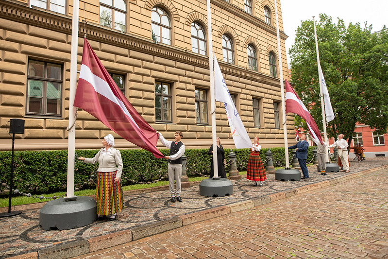 Pirmdien, 7. jūlijā, Saeimā notika svinīga XIII Latvijas Skolu jaunatnes dziesmu un deju svētku koordinatoru pieņemšana. Pasākuma atklāšanā Saeimas pagalmā svinīgi pacelts Dziesmu svētku karogs, iezīmējot ceļu uz gaidītajiem svētkiem.