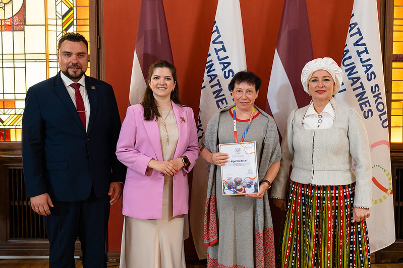 Saeimas priekšsēdētāja Daiga Mieriņa pasākuma laikā izteica pateicību novadu koordinatoriem par nozīmīgo ieguldījumu svētku sagatavošanā un norisē. Starp godinātajiem bija arī Dienvidkurzemes novada koordinatores – Aija Niedola un Ausma Kirhnere, kuras saņēma Saeimas priekšsēdētājas pateicības rakstus par profesionālu darbu svētku procesa vadībā, vēsta Dienvidkurzemes novada Izglītības pārvalde.