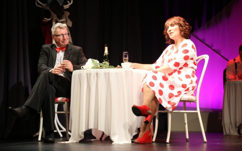 Priekules amatierteātra izrāde “Kungam Dzērvenes cukurā”.