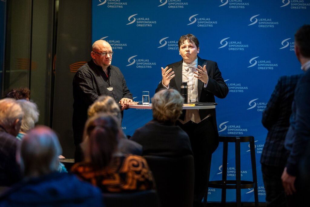 Koncerts un saruna “Simfonija tuvāk. Berlioza “Fantastiskā”” sākās ar mūzikas apskatnieka Oresta Silabrieža ievadvārdiem, kuros tika atklāts simfonijas tapšanas laika konteksts un šedevra uzbūves detaļas. Savukārt pēc koncerta klātesošie bija aicināti uz neformālu sarunu ar diriģentu A. Greteru.