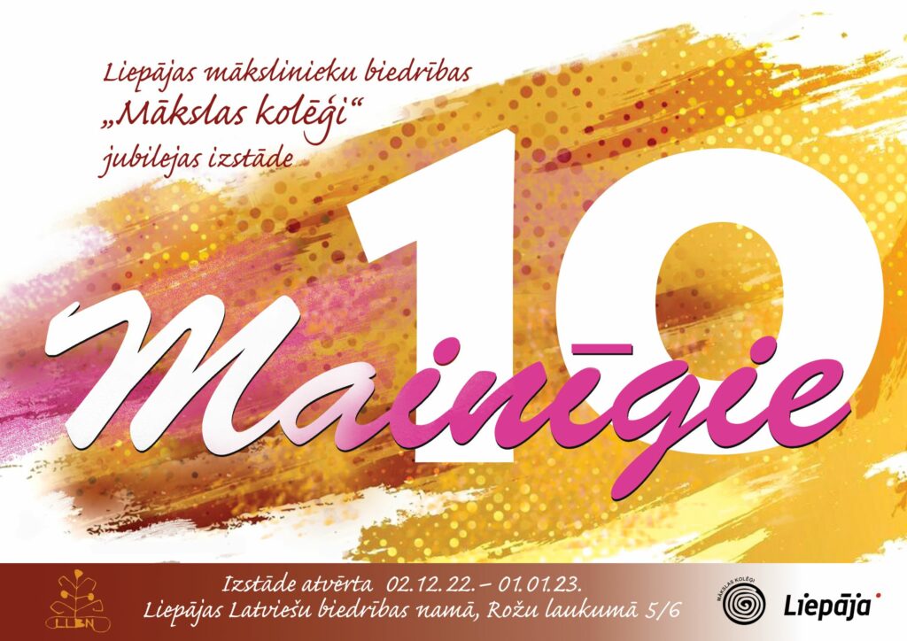 Liepājas mākslinieku biedrība „MĀKSLAS KOLĒĢI” 2023. gadā atzīmēs savas pastāvēšanas 10. gadadienu. Tāpēc no šā gada 2. decembra līdz 2023. gada 1. janvārim interesentiem apskatei būs pieejama biedrības „MĀKSLAS KOLĒĢI” 10 gadu jubilejas izstāde „MAINĪGIE 10” Liepājas Latviešu biedrības nama galerijā.