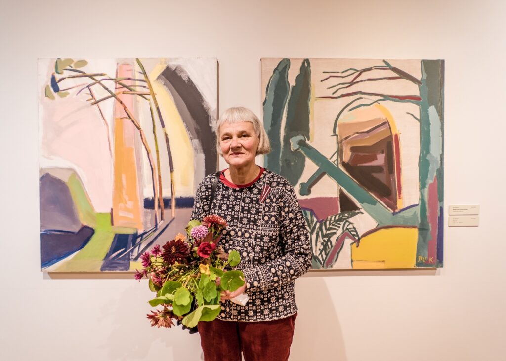 “Latvijas ainava ir tas, kas mani joprojām interesē kā motīvs gleznošanai. Meži, lauki, ūdeņi, uzartas zemes dažādie toņi. Savās bildēs šos redzējumus pārradu, koncentrēju un padaru par vienu stipru veselumu. Tās ir mūžīgā kājāmgājēja ainaviskās sajūtas transformētas nosacītās formās, tie ir mežu, lauku un ūdeņu tēli košās, stiprās krāsās,” saka māksliniece Ilze Karlsone, akcentējot viņas īpašo saikni ar dabu.