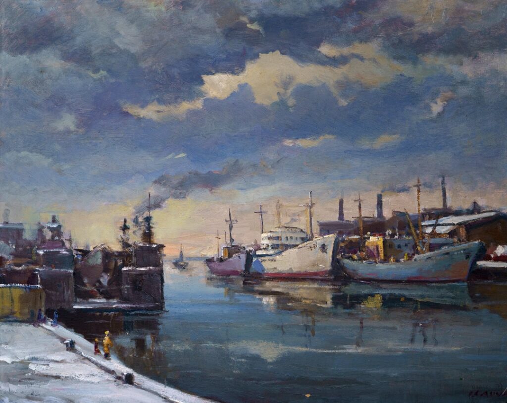Izstādē aplūkojams arī gleznotāja Visvalža Garokalna 1963. gada darbs “Zvejas kuteri ziemā”. Kopumā Liepājas muzeja krājumā ir septiņi Visvalža Garokalna akvareļi. Mākslinieks 1960 – tajos gados ir strādājis gan Liepājas muzejā, gan Liepājas Mākslas skolā.