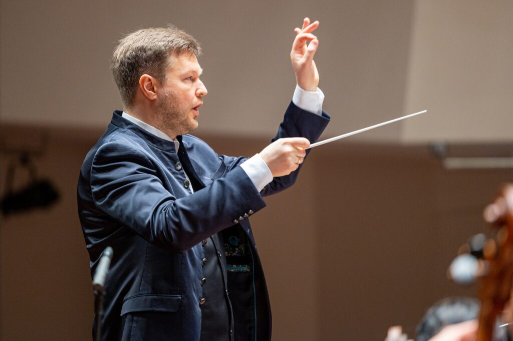 Vērienīgā Artura Maskata Trīskāršā koncerta pasaules pirmatskaņojumu, kam vajadzēja notikt jau pavasarī, orķestris izpildīs kopā ar starptautiski pazīstamiem latviešu solistiem – vienu no pasaulē ievērojamākajām solistēm-instrumentālistēm – ērģelnieci Ivetu Apkalnu, atpazīstamāko Latvijas flautisti Ditu Krenbergu un dziļo un pārdomāto interpretāciju meistaru – pianistu Reini Zariņu.