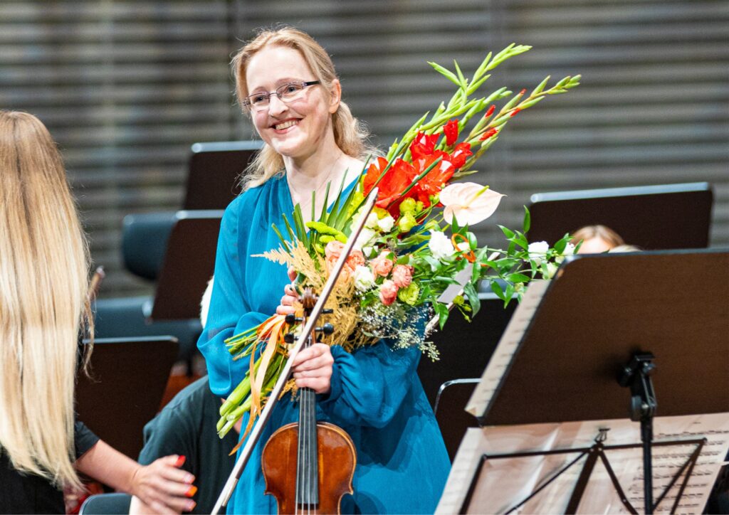 - augustā jaunā koncertmeistare būs soliste Dienvidkurzemes festivāla “Rimbenieks” īpaši krāšņā atklāšanas koncertā Grobiņas Livonijas ordeņa pilsdrupās (un dienu vēlāk arī Kazdangā), kur viņa kopā ar Liepājas Simfoniskā orķestra stīgu grupu un galveno diriģentu Gintaru Rinkeviču atskaņos vienu no ievērojamākajiem un pazīstamākajiem itāļu komponista Antonio Vivaldi skaņdarbiem, vijoļkoncertu ciklu “Četri gadalaiki”.