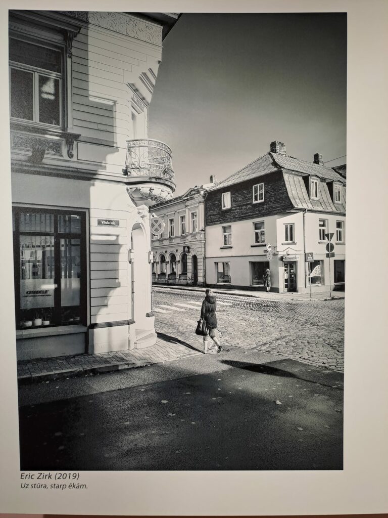 “Izstāde ir stāsts, versija par Liepāju, par pilsētu caur līnijām, ritmiem, notikumu. Caur pierakstītu vārdu un emocijām, kuras veido vienotu autora skatījumu uz telpu, laiku un mazliet trauslu pieskārienu nezināmajam. Reizēm tas klusē, reizēm uzsit asini, reizēm ieskan pulsā caur simtiem, simtiem miljoniem zvaigžņu vai neveikli sanumurētām pagalma durvīm, kaiju un baznīcu siluetiem, atspulga burtiem uz putna spārna vai tikai retu svītru zem ielu tetovētās ādas. Reizēm tā ir vienkārši skaņa,” par fotoizstādi stāsta Liepājas Tautas foto studijas vadītāja Iveta Herbsta.