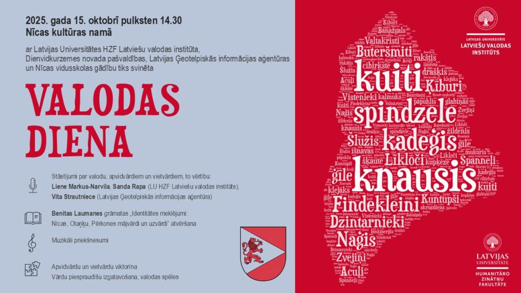 Valodas dienas kulminācija būs augustā Latvijas Universitātes Akadēmiskajā apgādā izdotās valsts emeritētās zinātnieces, habilitētās zinātņu doktores Dr. habil. philol. Benita Laumanes monogrāfijas “Identitātes meklējumi: Nīcas, Otaņķu, Pērkones mājvārdi un uzvārdi” atvēršana.