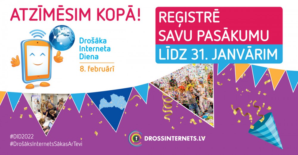 Rosinot skolas, bērnudārzus, bibliotēkas, bērnu un jauniešu centrus visā Latvijā atzīmēt Drošāka interneta dienu, “Drossinternes.lv” aicina gan 8.februārī, gan visu februāri organizēt izglītojošus pasākumus un aktivitātes par to, kā bērniem un jauniešiem sevi pasargāt internetā, vienlaikus veicinot cieņpilnu izturēšanos citam pret citu virtuālajā vidē.