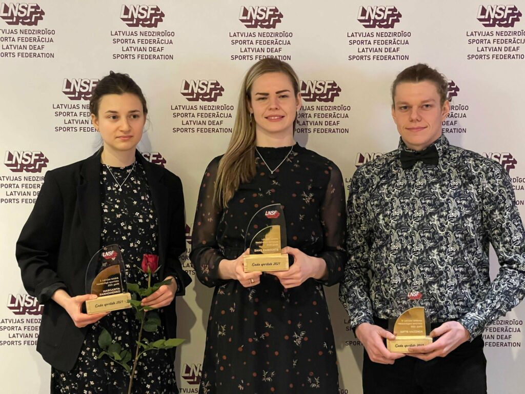 Apbalvošanas ceremonijā tika sveikti trīs Latvijas labākie nedzirdīgie sportisti: par labāko tika atzīta grobiņniece Z. Embrekte, otrā bija šahiste Margarita Parhomenko, bet trešais – peldētājs Artis Vazdiķis no Liepājas, informē Latvijas Nedzirdīgo sporta federācija.