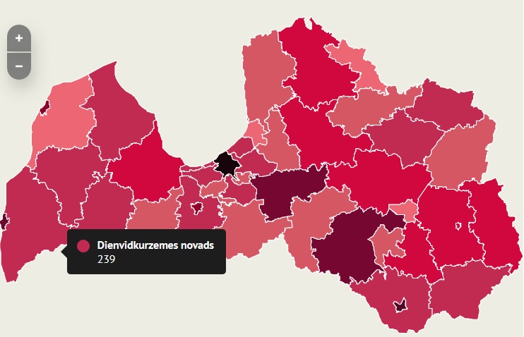 Vislielākais kritums ir bijis Valkas novadā. Svētdien tur bija reģistrēti 58 iedzīvotāji, kuriem pēdējo 14 dienu laikā ir atklāta inficēšanās ar Covid-19, kas ir par 60,3% mazāk nekā iepriekšējā svētdienā.