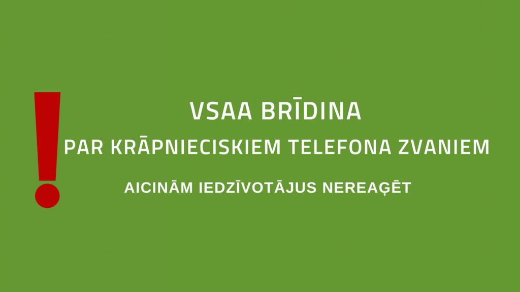 Valsts sociālās apdrošināšanas aģentūra (VSAA) brīdina par krāpnieciskiem telefona zvaniem, ko pēdējās dienās saņēmuši iedzīvotāji, aģentūru LETA informēja VSAA.