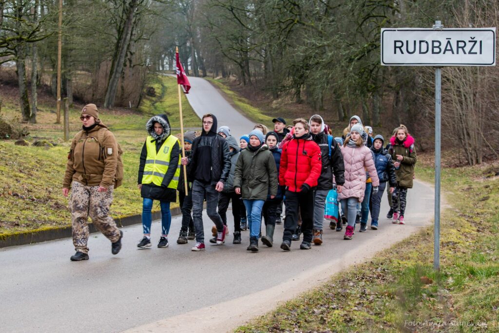 Jaunsargi pārgājienu sāks plkst.14. Tikmēr Kalpaka skolas kadeti un Bļodniece uzklausīs vēsturisku stāstījumu par Rudbāržu muižu, pēc kura plkst.14.30 kopā ar Sipenieku, Pļaviņu, Zemessardzes 4.Kurzemes brigādes štābu un Latviešu Virsnieku apvienības pārstāvjiem uzsāks savu pārgājiena maršrutu, kura ietvaros paredzēta arī Kojas upes un Ventas forsēšana.