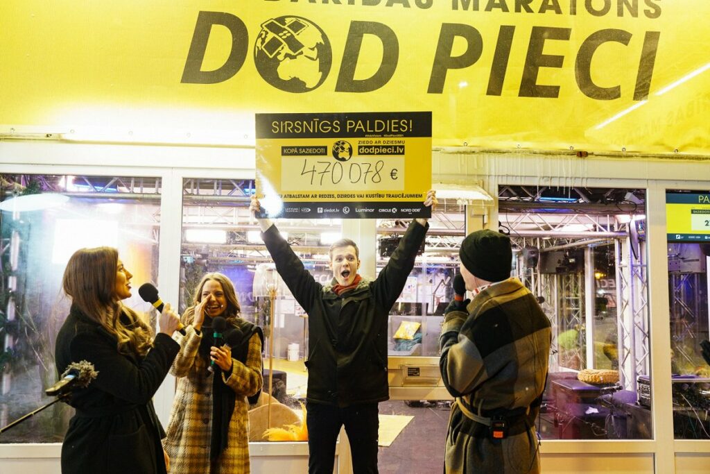 Latvijas sabiedrisko mediju rīkotajā labdarības maratonā “Dod pieci!” šogad saziedoti 470 078 eiro, kas tiks izlietoti palīdzības sniegšanai un vides šķēršļu likvidēšanai cilvēkiem ar redzes, dzirdes vai kustību traucējumiem, aģentūru LETA informēja Latvijas Radio galvenā sabiedrisko attiecību speciāliste Liene Pālēna.
