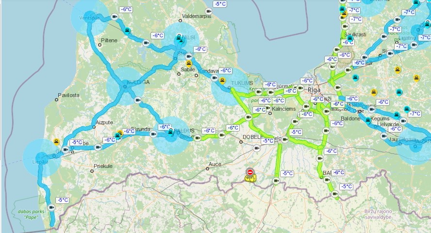 Tikmēr pa reģionālajiem autoceļiem apgrūtināta braukšana ir gandrīz visā Latvijas teritorijā.