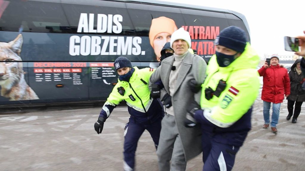 Jau ziņots, ka Gobzemu pirmdien policija aizturēja Tukumā, kur viņš ar speciāli sagādāto un aplīmēto autobusu bija ieradies, lai sāktu viņa reklamēto protesta akciju pret valsts varu. Tikšanās vieta bija paredzēta pie veikala “Lidl”, bet aizturēšana notika pāri ielai pie vietējās benzīna uzpildes stacijas.