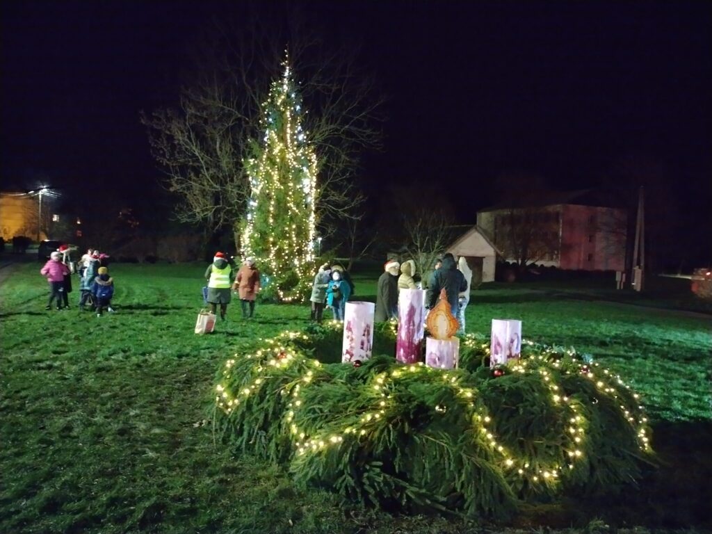 Ziemassvētku egle un Adventes vainags Cīravā.