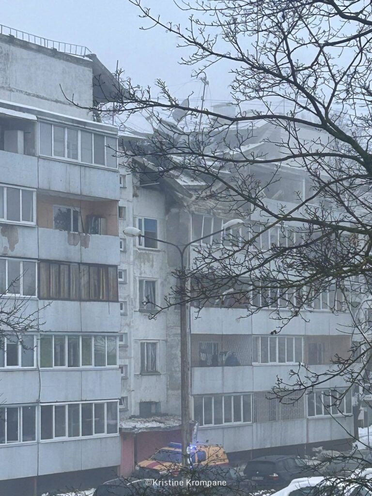 Torņakalnā gāzes sprādziena dēļ daļēji sagruvis daudzstāvu ēkas jumts