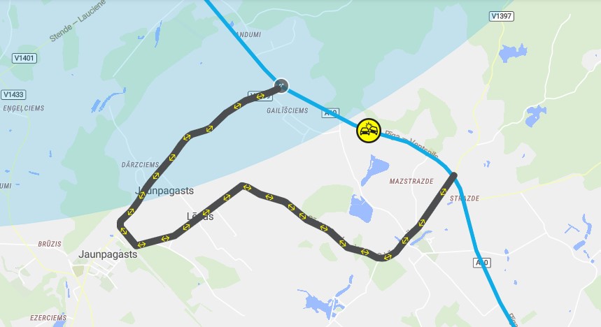 Uz Ventspils šosejas Talsu novadā divu transportlīdzekļu sadursmes dēļ bloķēta satiksme abos virzienos