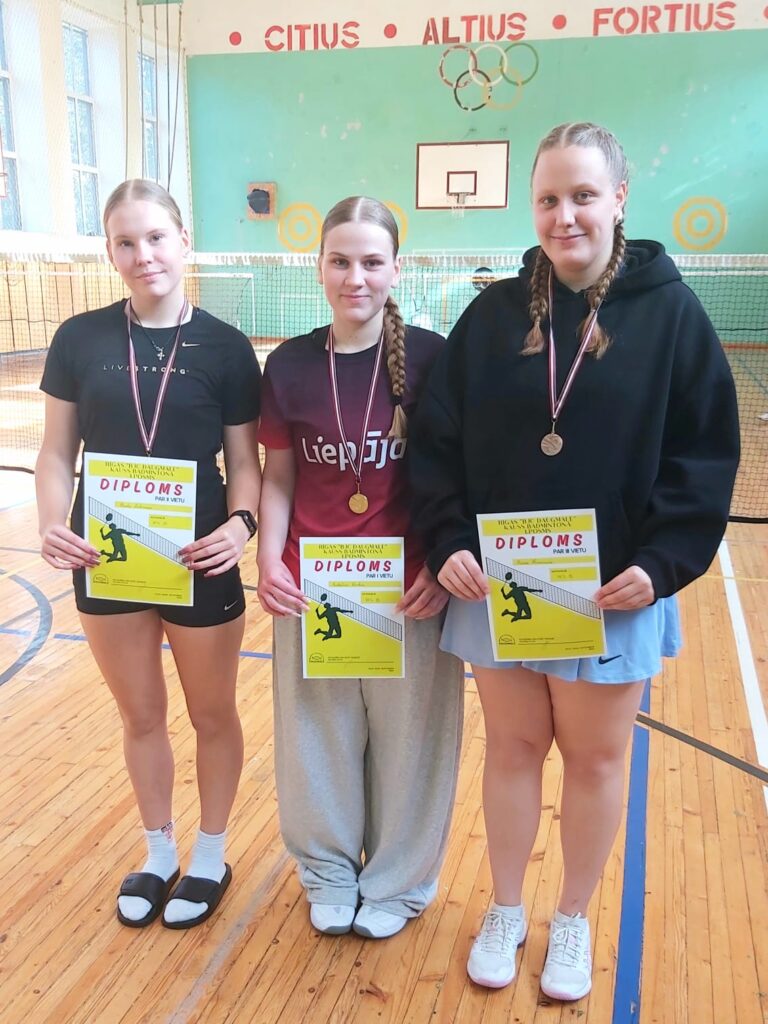 Divi zelti Andželīnai Vinklerei jauniešu B grupā, triumfējot gan meiteņu vienspēļu turnīrā, gan dubultspēlēs pārī ar Ievu Meždreiju, portālu “ReKurZeme” informē Liepājas badmintonistu treneris Aigars Brečs.
