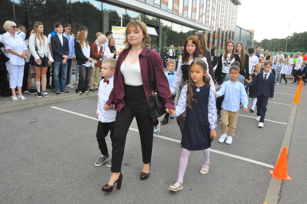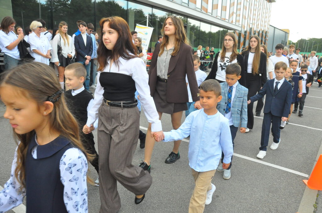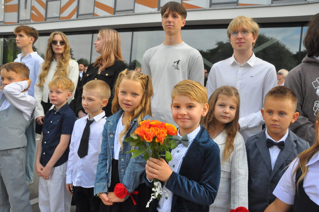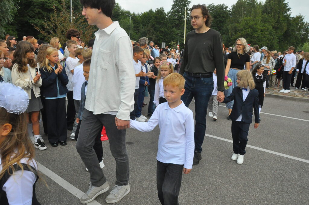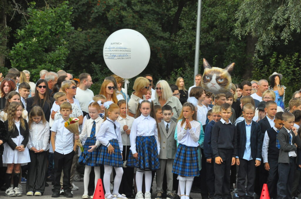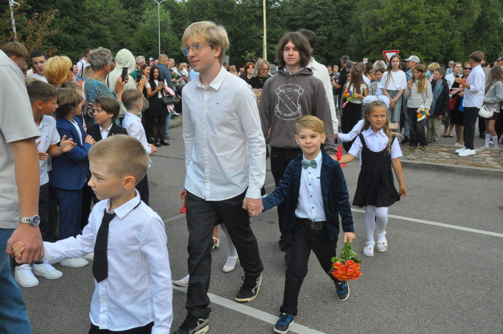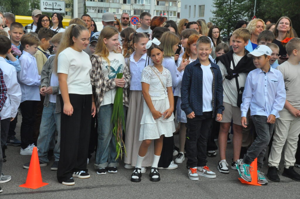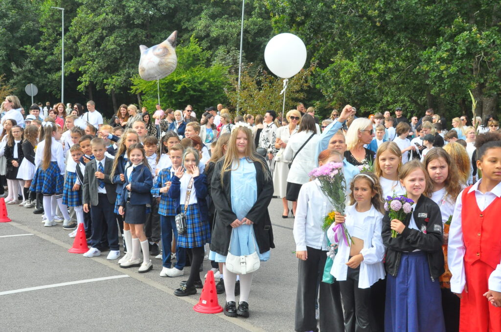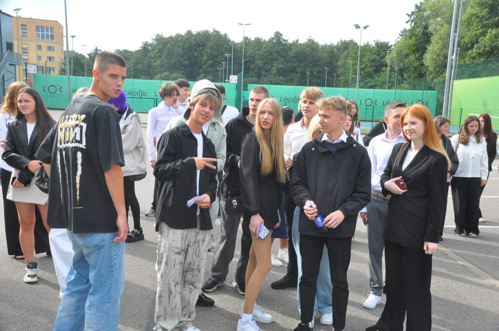 Fotoieskats Liepājas Liedaga vidusskolas 1. septembra svinīgajā pasākumā, kas notika LOC Tenisa halles stāvlaukumā.