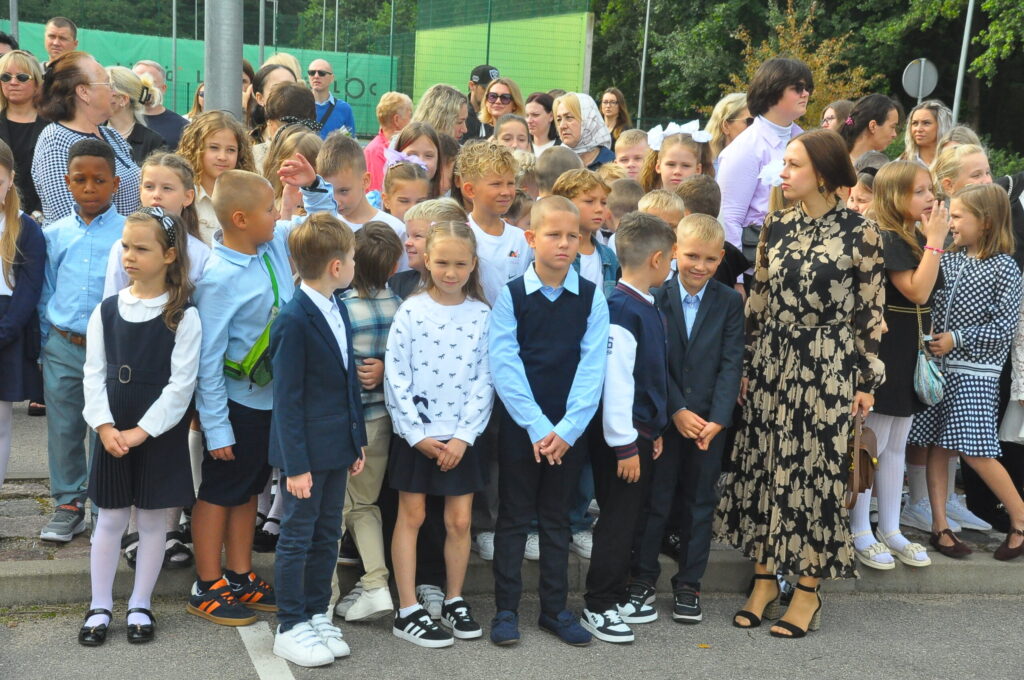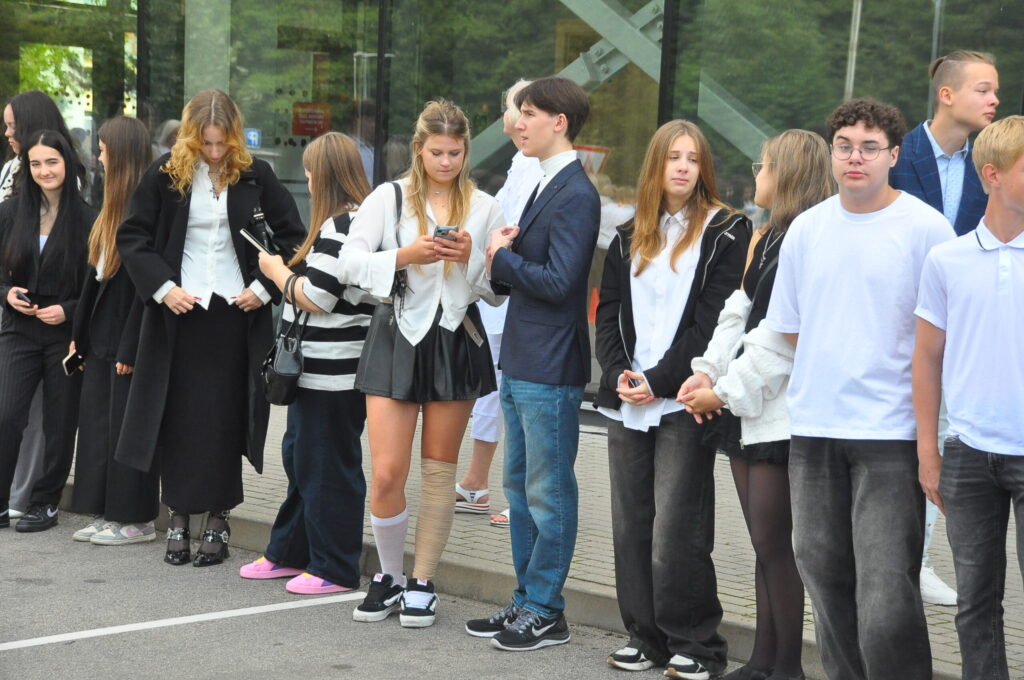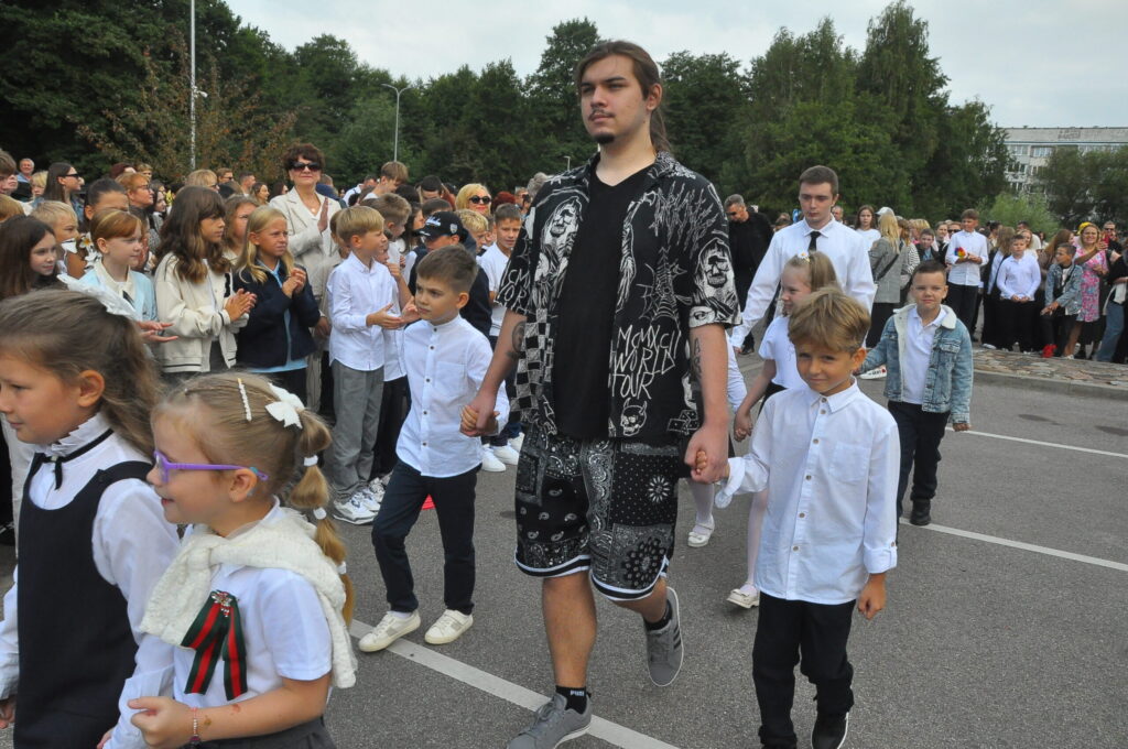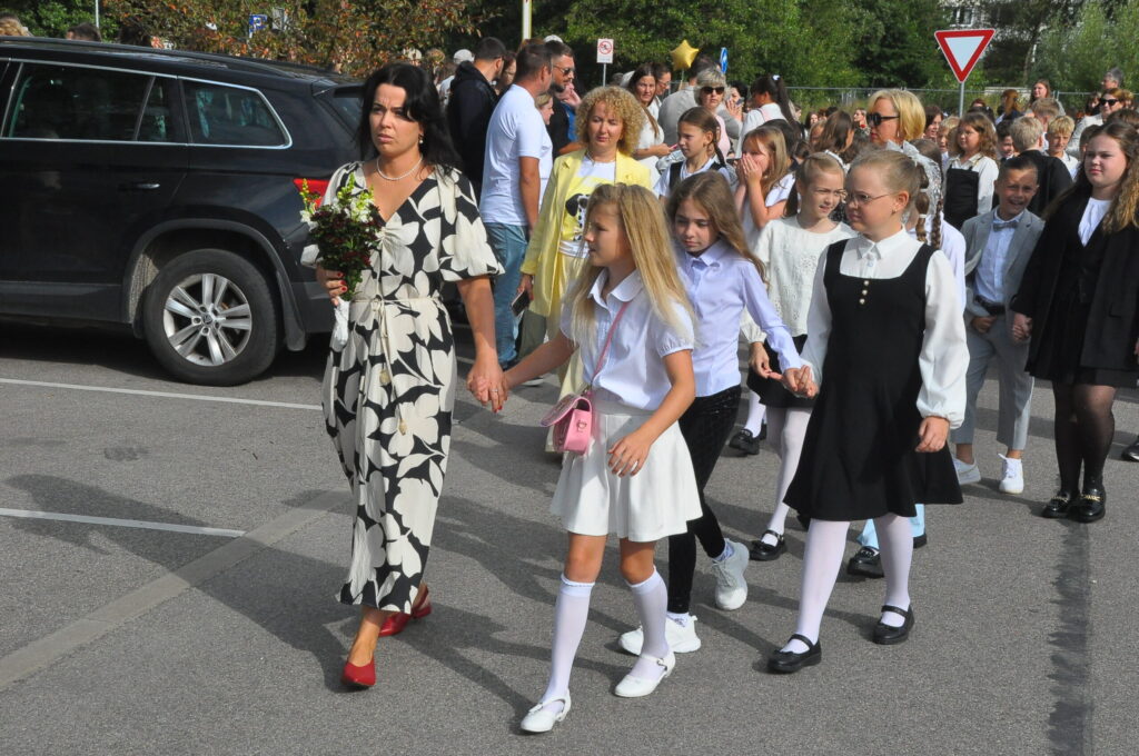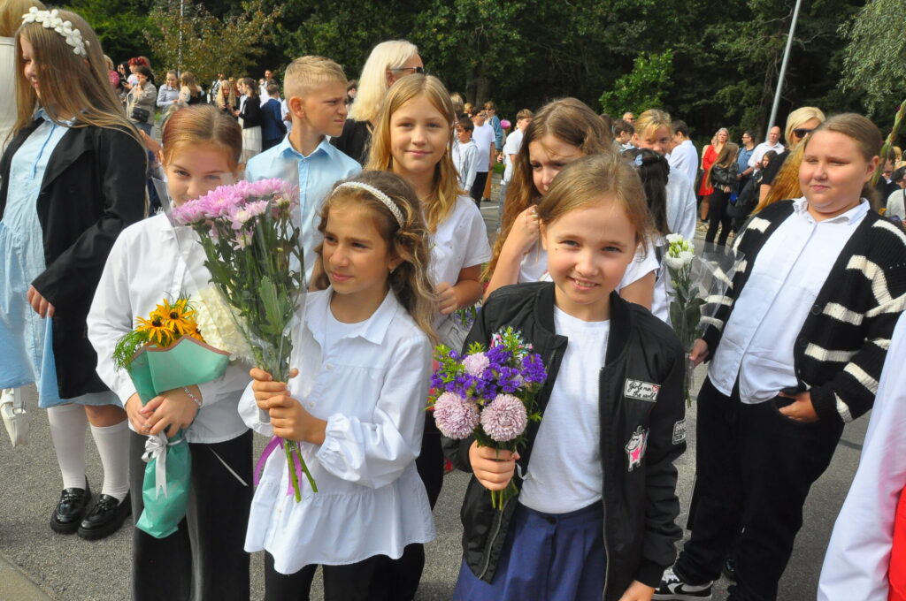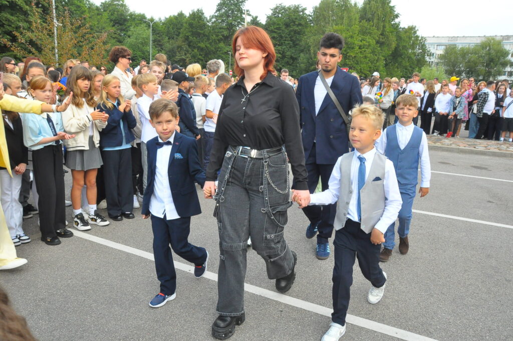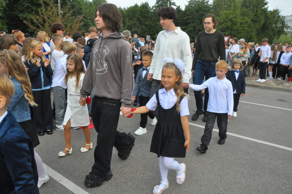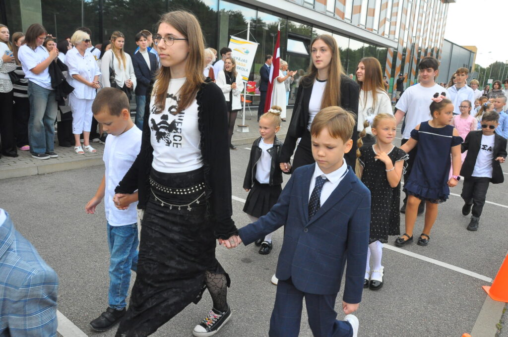 Fotoieskats Liepājas Liedaga vidusskolas 1. septembra svinīgajā pasākumā, kas notika LOC Tenisa halles stāvlaukumā.