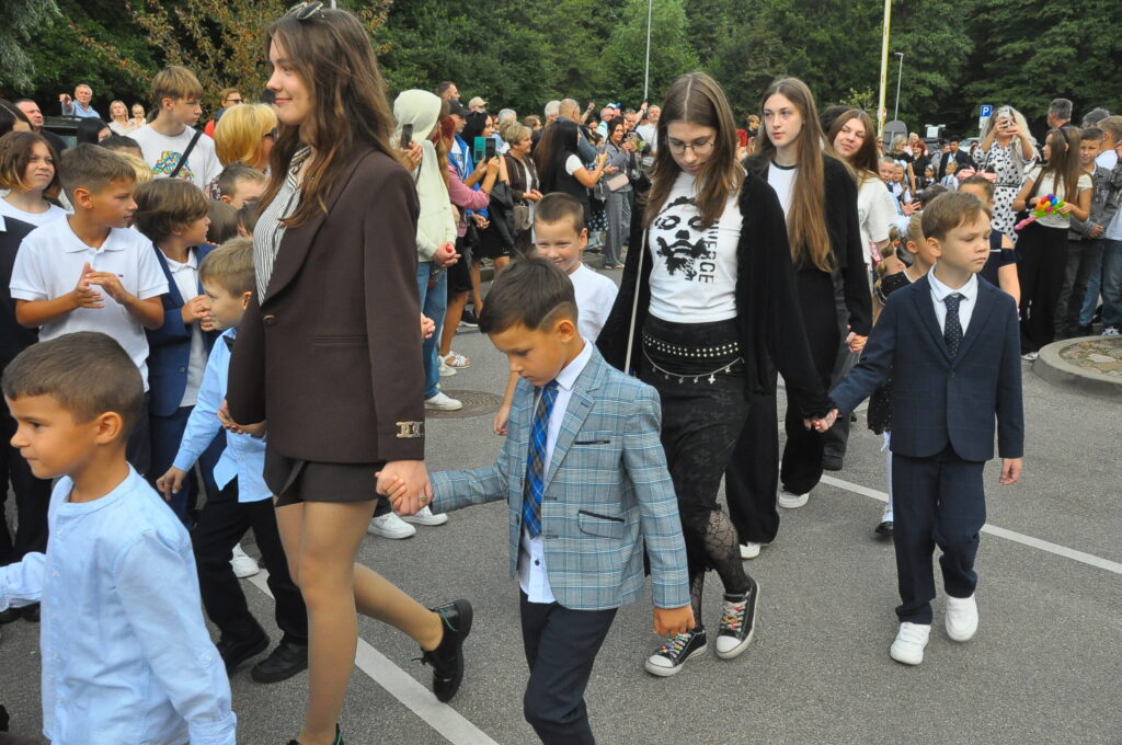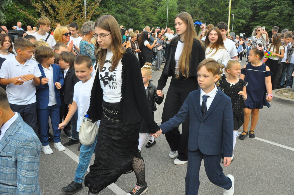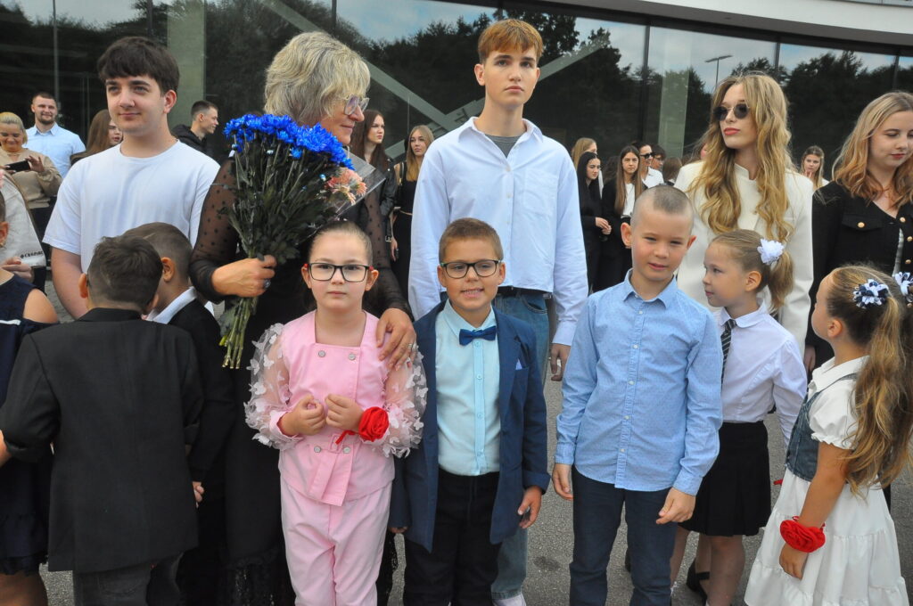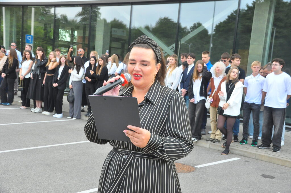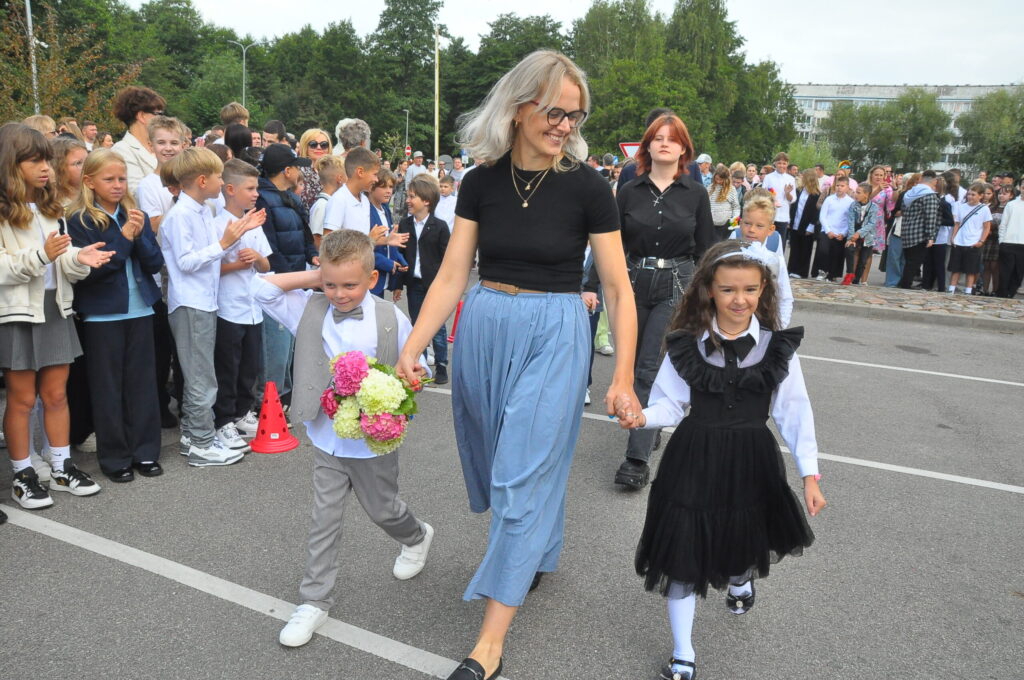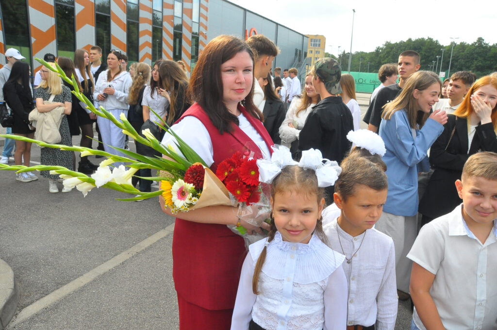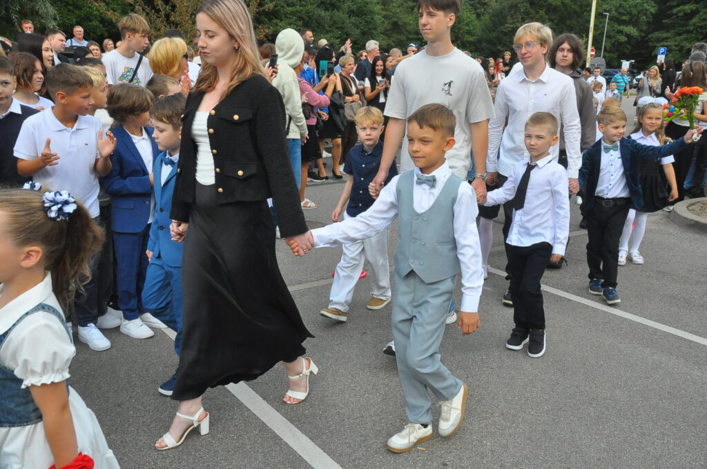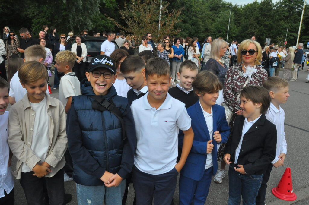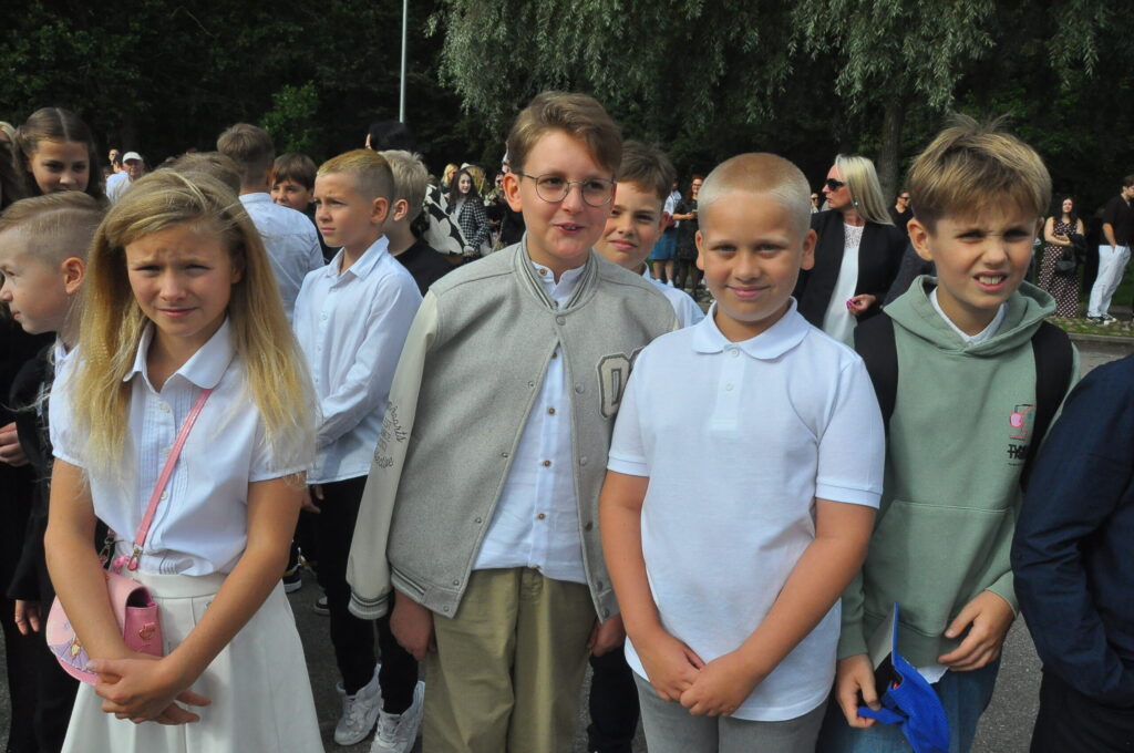 Fotoieskats Liepājas Liedaga vidusskolas 1. septembra svinīgajā pasākumā, kas notika LOC Tenisa halles stāvlaukumā.