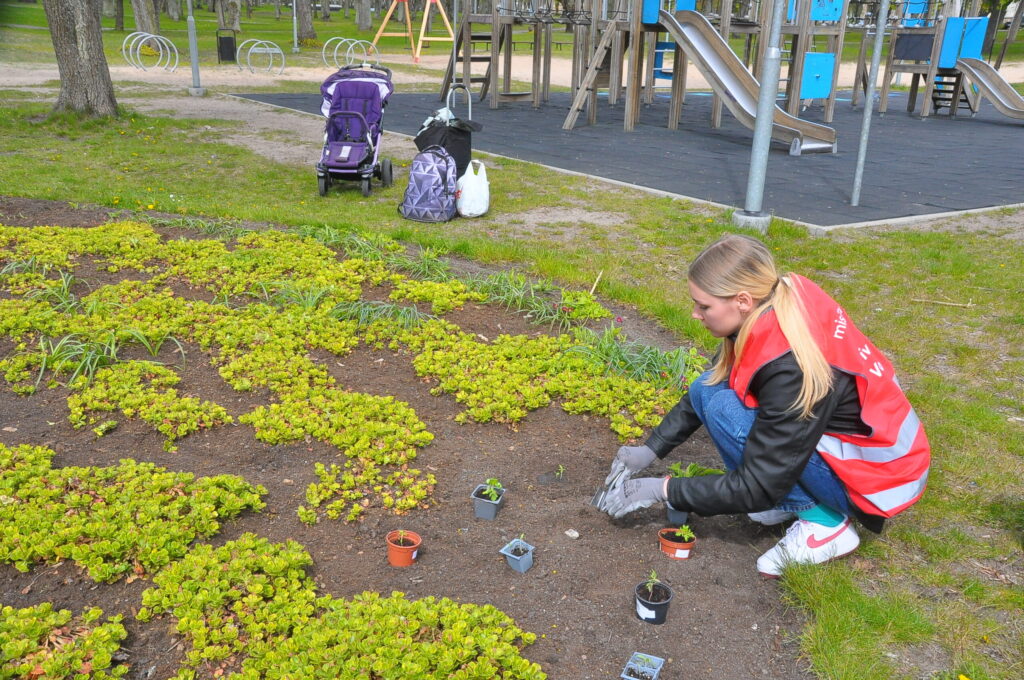 Piektdien divu stundu garumā kopā ar pilsētas dārzniecēm notika stādu dēstīšanas darbi dažādās pilsētas vietās un mikrorajonos. Portāls “ReKurzeme” pabija Lāčplēša dārzā Karostā.