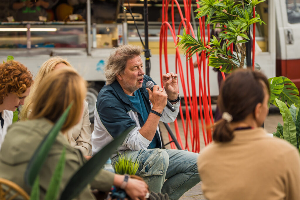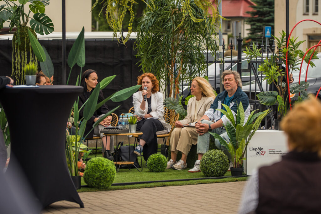 Diskusijā piedalījās eksperti un nozares praktiķi no Rīgas un radošās (ne)miera zemes – Latvijas Arhitektu savienības Jaunā Eiropas Bauhaus projekta vadītāja Ieva Pakalniņa, Nacionālās kultūras mantojuma pārvaldes Kurzemes reģionālās nodaļas vadītāja, galvenā valsts inspektore Elīna Orna, Liepājas Restaurācijas centra vadītājs Ivars Pilips, Aizputes Renesanses biedrības līdzdibinātāja Inese Tauriņa, kā arī Kuldīgas Restaurācijas centra vadītāja Ilze Zariņa. Sarunu vadīja aktīva liepājnieku ģimene un kultūras vērotāji Nauris, Grēta un Ģertrūde Lazdāni.