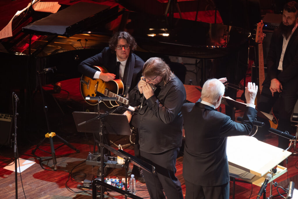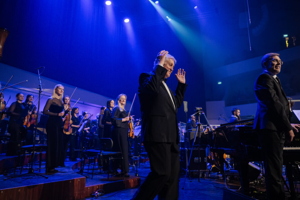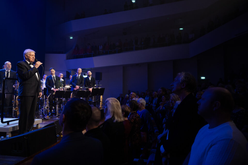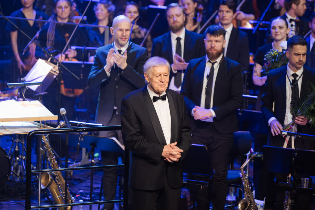 FOTO: Ar vērienīgu simfodžeza koncertu nosvinēta diriģenta Jēkaba Ozoliņa 80. jubileja