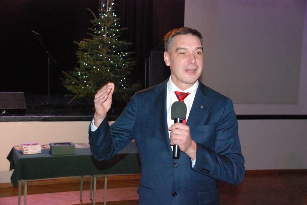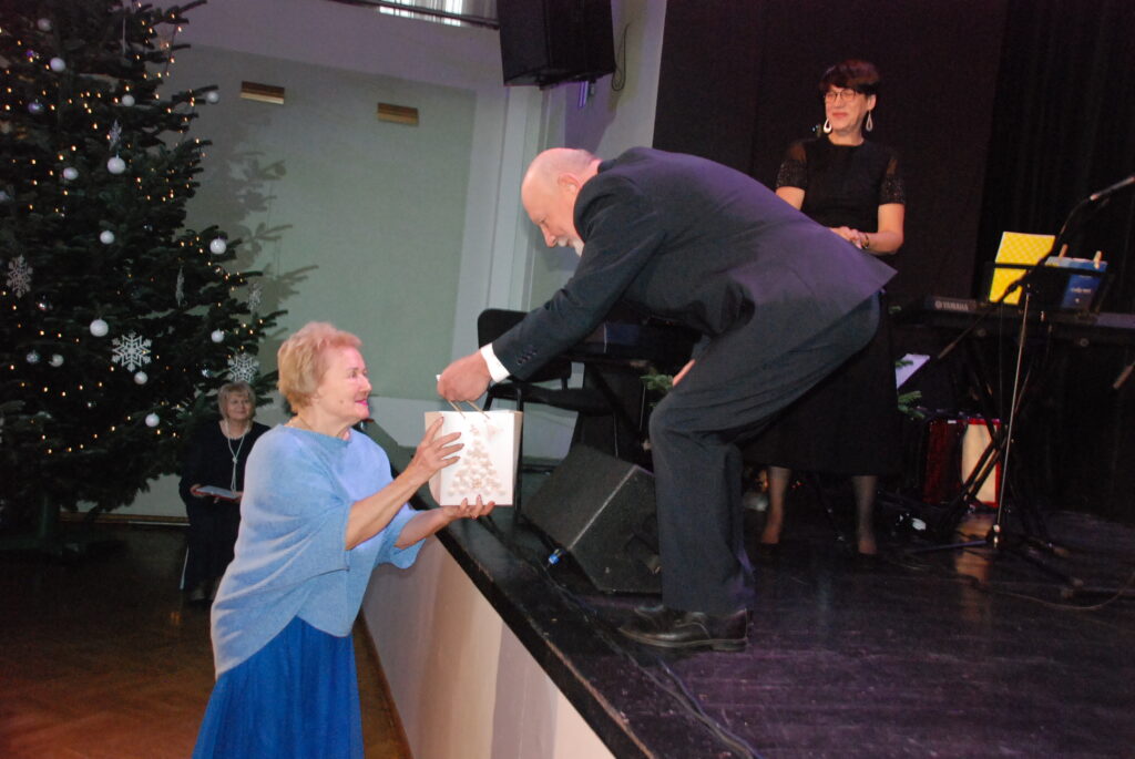 “Patīkamu, jauku atmosfēru, labu garstāvokli un priecīgus Ziemassvētkus un ļoti, ļoti Laimīgu Jauno gadu,” Ziemassvētku ieskaņas koncerta dalībniekiem vēlēja Liepājas Pensionāru biedrības vadītāja Maruta Kārkliņa.
