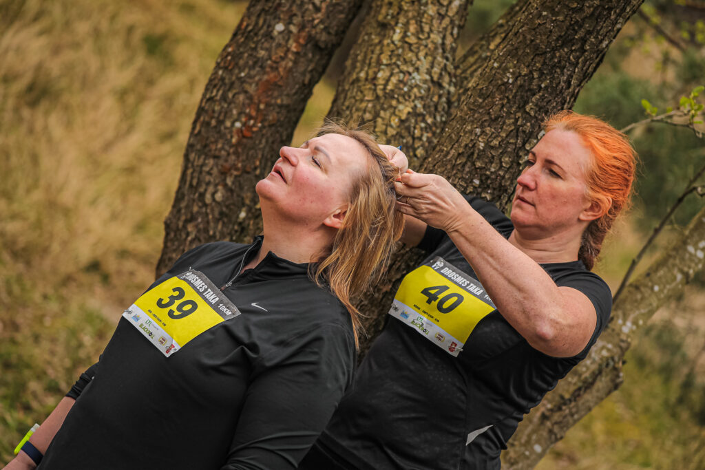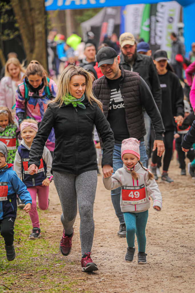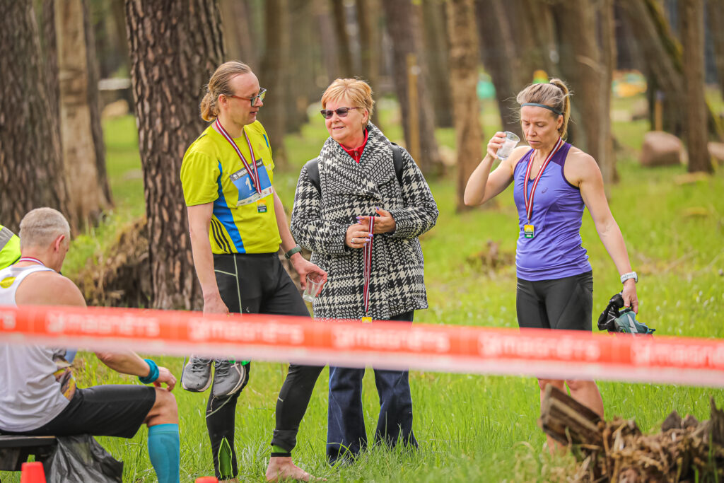 Pirms katras distances starta dalībniekus ar vingrinājumiem iesildīja trenere Dace Dieviņa, kura iepriekšējās brīvdienās bija novadījusi arī sacensību “Drosmes taka” koptreniņu.
