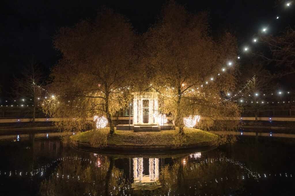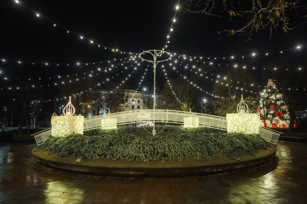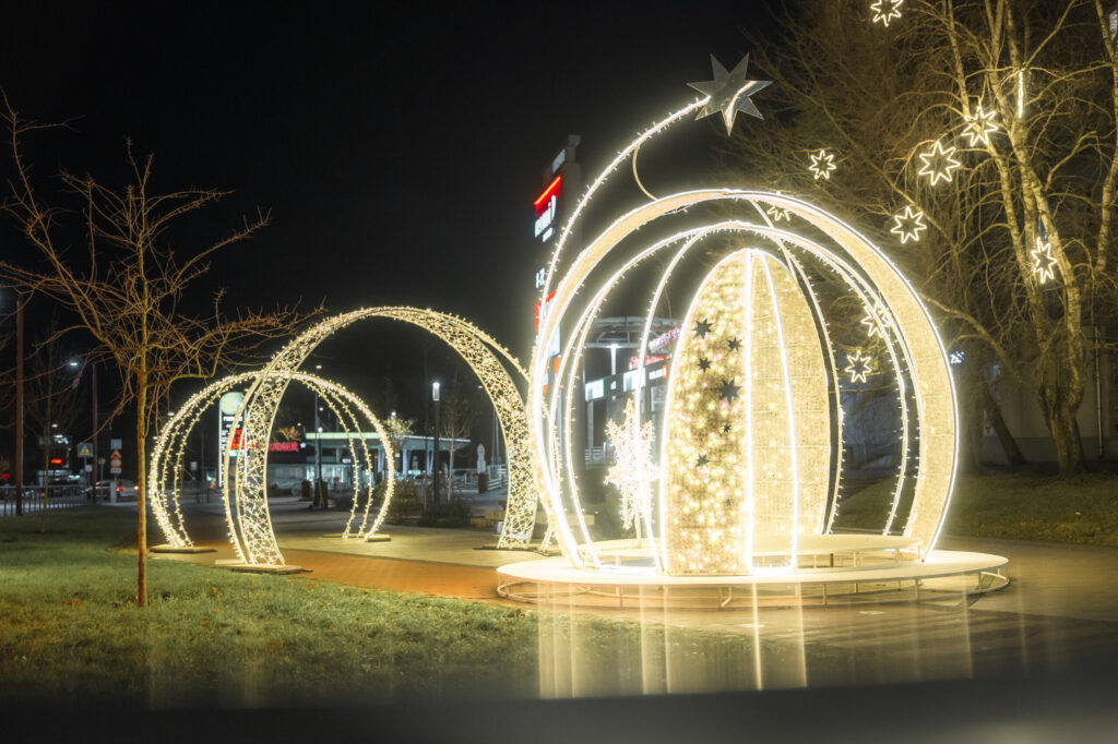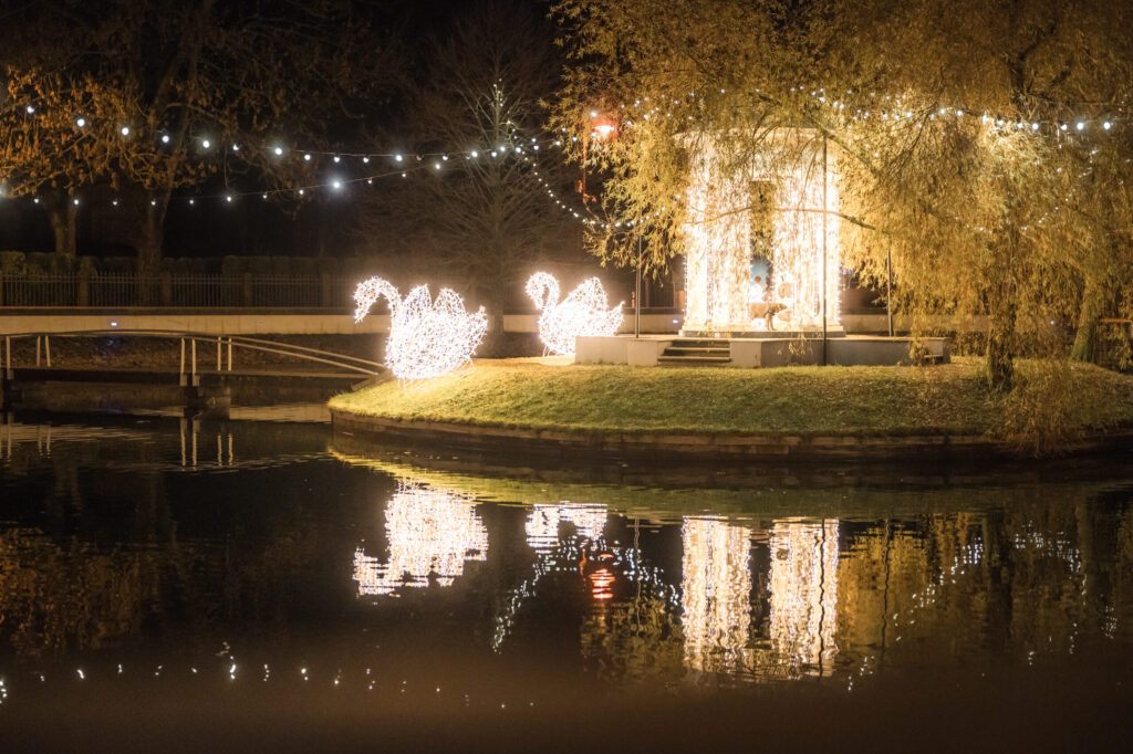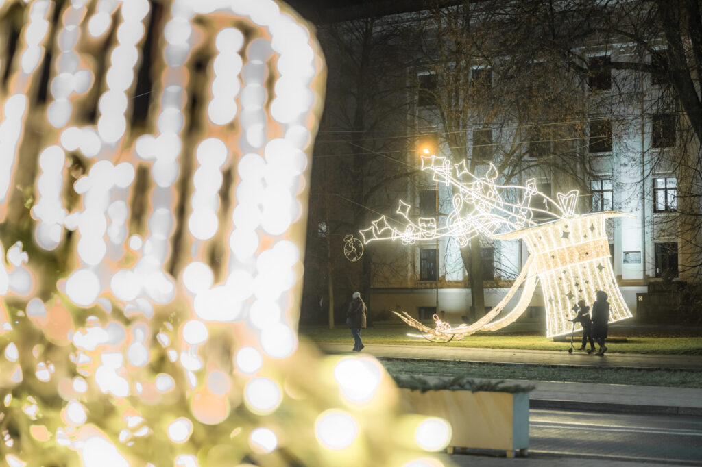 Līdz ar pilsētas lielās egles atklāšanu Rožu laukumā Liepājā tiek iedegti svētku rotājumi, kas mirdz viscaur pilsētai un aicina gan liepājniekus, gan arī tuvus un tālus pilsētas viesus doties pastaigā pa pilsētu. Pietam šogad rotājumu klāstu papildina jauni mākslinieciski tēli jaunās vietā – īpaši sapņaina noskaņa sagaida Jūrmalas parkā un pie Gulbju dīķa.
