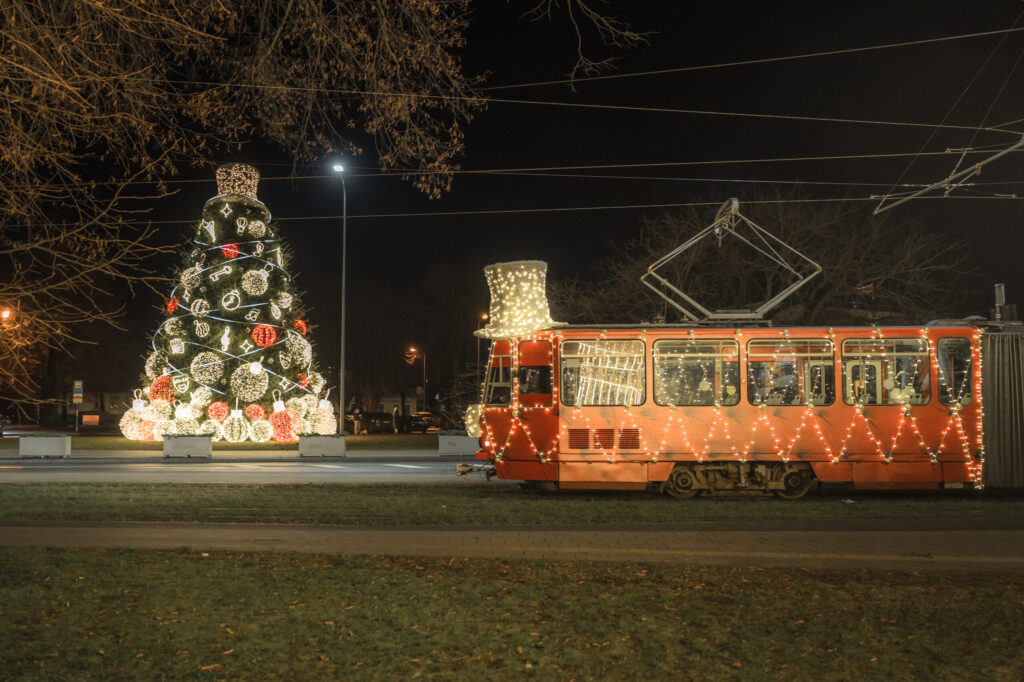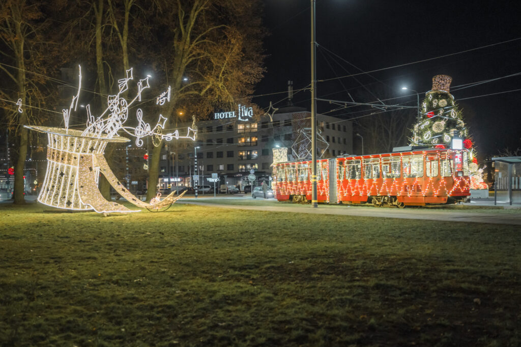 Ziemassvētku gaidīšanas laiks ir tas brīdis, kad pilsētas ielās atkal izbrauc vecais, omulīgais tramvajs, kāds ikdienā vairs nav sastopams pilsētas ielās, jo to nomainījuši jaunie, zemās grīdas tramvaji. Tramvaju rotās tāds pats mākslinieka cilindrs kā galvenajai pilsētas eglei. Tramvaja atrašanās vietai var sekot līdzi mobilajā lietotnē “Liepājas pilsēta” sadaļā Transports – Reāllaika karte, lūkojot pēc īpašās rūķa ikonas.