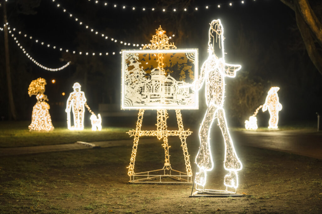 Šajā svētku gaidīšanas laikā tiek turpināta pagājušajā gadā iesāktais mākslas un radošuma motīvs. Tādēļ šajā reizē ārpus ierastā izveidoti jauni tēli, kuri pie mums atceļojuši no vēsturiskajiem kūrorta un sanatorijas laikiem. Ikvienu Jūrmalas parka apmeklētāju Peldu ielas galā laipni sagaida izgaismotas figūras: mākslinieks ar molbertu, dāma ar sunīti, kungs ar spieķi. Bet tos, kuru pastaigas maršruts aizvedīs līdz Gulbju dīķim, gaida patīkams pārsteigums – vieta pārvērtusies par īstu sapņu saliņu, kur mājo vairāki gulbji.