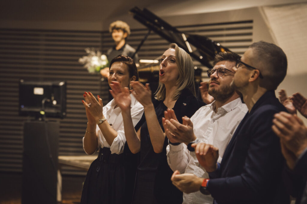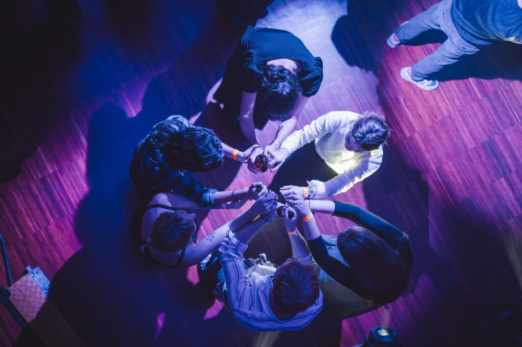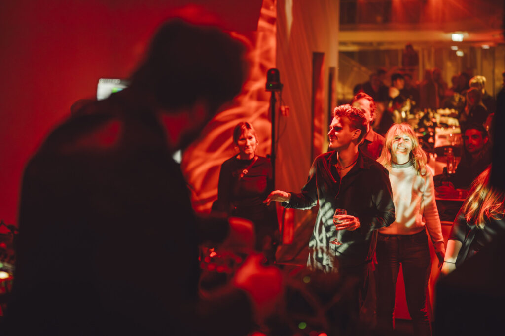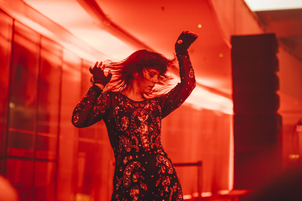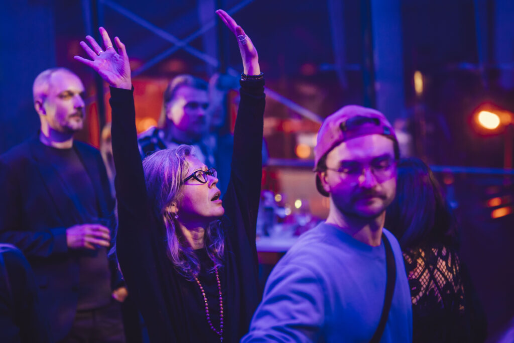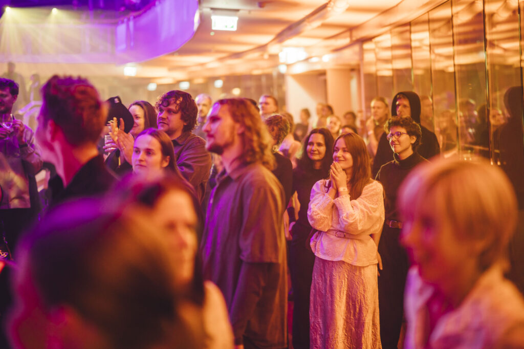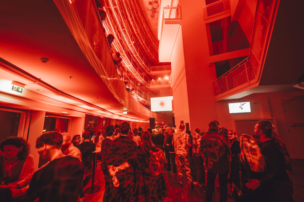 Vakara turpinājumā elektronikas un skaņas dizaina līnija turpinājās ballītē “Pulss un kustība” koncertzāles 3. stāva publiskajā zonā. Ballīti atklāja Liepājas mākslinieku duets “Šūna ∙ 2” – Elza Zīverte un Kaspars Jaudzems, uzstājoties ar performanci “heart ∙ ∙ beat”, kur digitāli bezvadu sensori ķermeņa un sirds darbības pārvērš skaņā un attēlā. Pēcāk tikāmies ar pasaulē plaši pazīstamo Latvijas elektroniskās mūzikas duetu “Dominique Dumont” – Anete Stuce un Artūrs Liepiņš –, kas piedāvāja franču valodas gaisotni, melanholiju un idilli ar darbiem sava jaunākā albuma “Deux Paradis”. Ballītes noslēgumā mūsdienu klasiskās mūzikas komponists Platons Buravickis prezentēja īpaši šim vakaram radītu jaundarbu-performanci “Neurotic Vibrations”, kurā izpaužas cilvēka neirotiskās vibrācijas.