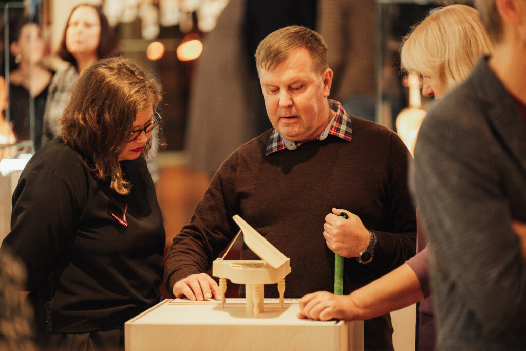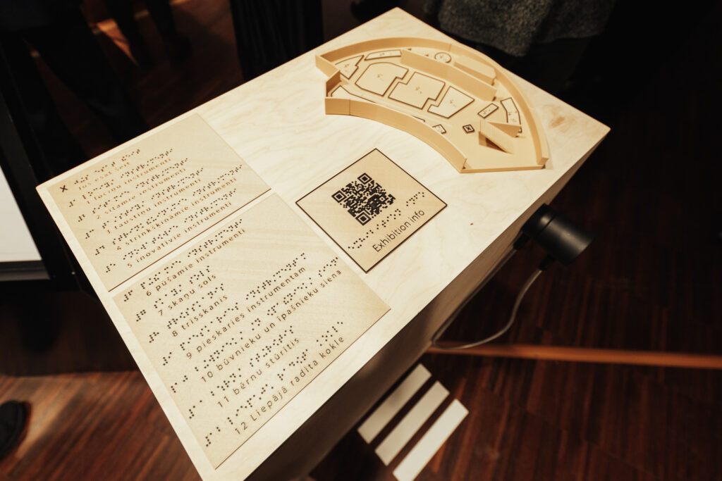 Sadarbojoties ar biedrību “SocIntegra” un RTU Liepājas akadēmiju, izstāde ir īpaši piemērota arī cilvēkiem ar redzes traucējumiem. Ir pieejama taktila izstādes karte, apraksti Braila rakstā un vadlīnijas. Īpaši ģimenēm un bērniem izstādi papildina burtnīca “Pieskāriens”. Tajā izlasāmi interesanti fakti par mūziku un instrumentiem, kā arī intervija ar dziedātāju Katrīnu Gupalo. Mazos prātus asina krustvārdu mīklas, uzdevumi, krāsojamās lapas un daudzas citas aktivitātes.