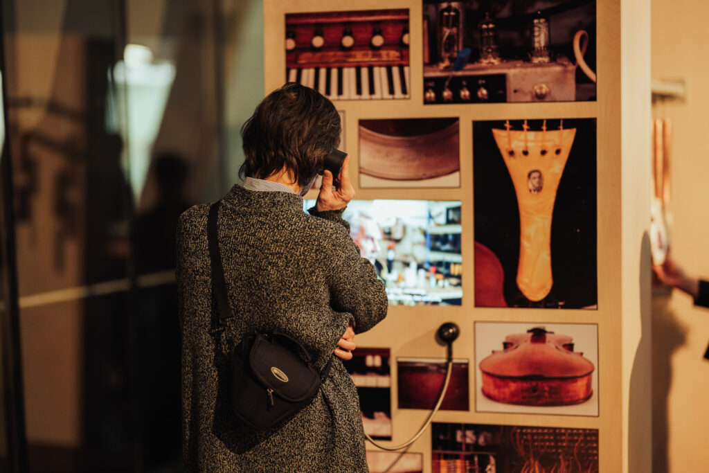 Dažiem no instrumentiem blakus novietoti sensori, ar kuru palīdzību apmeklētāji var dzirdēt šo instrumentu skanējumu, virzot plaukstu virs sensora. Pieejami arī seši audiovizuāli stāsti par katru no izstādē izceltajām instrumentu grupām ar instrumenta skanējuma digitālām demonstrācijām. Pie “Meistaru sienas” iespējams uzzināt par mūzikas instrumentu būvētājiem Latvijā. Ikviens var darboties un izmantot maņas, pārbaudīt praktiski, cik sver instruments, veidot skaņu spēles uz “Skaņu sola”, izmēģināt sajūtu vērošanas trenažieri “Trīsskanis” un darboties ar “čamdāmiem” instrumentiem.