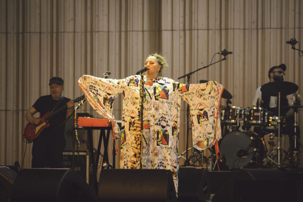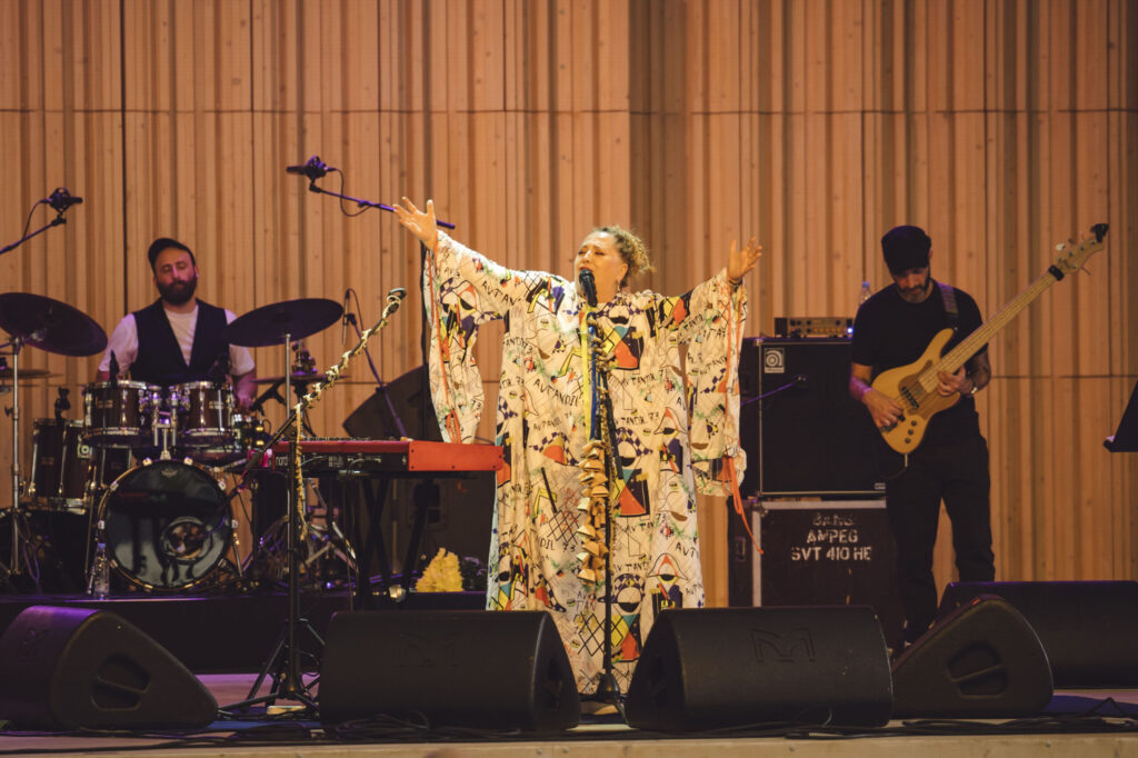 Sestdien, 29. jūlijā, muzikāli spilgtu vakaru Liepājas koncertdārzā “Pūt, vējiņi!” uzbūra harismātiskā un enerģiskā gruzīnu etnodžeza dziedātāja Nino Katamadze ar grupu “Insight”, klausītājus aizraujot gan ar neizmērojamām balss spējām, gan patiesu jūtu piepildītām un saviļņojošām oriģināldziesmām.