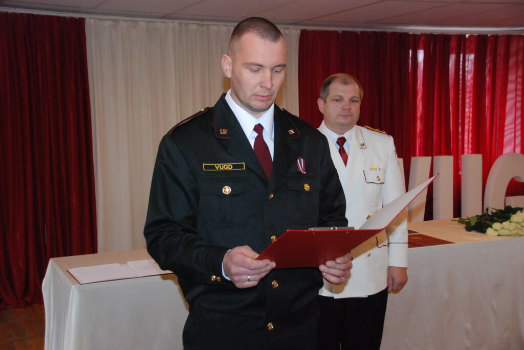 Atzīmējot Latvijas Republikas proklamēšanas 104. gadadienu un godinot ieguldījumu Latvijas un tās iedzīvotāju drošības stiprināšanā, Valsts ugunsdzēsības un glābšanas dienesta (VUGD) Kurzemes reģiona pārvaldes (KRP) amatpersonām piektdien, 11. novembrī, Liepājā tikas pasniegti apbalvojumi.