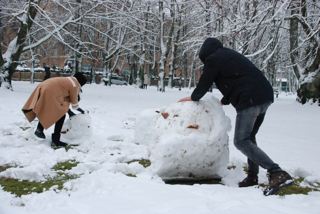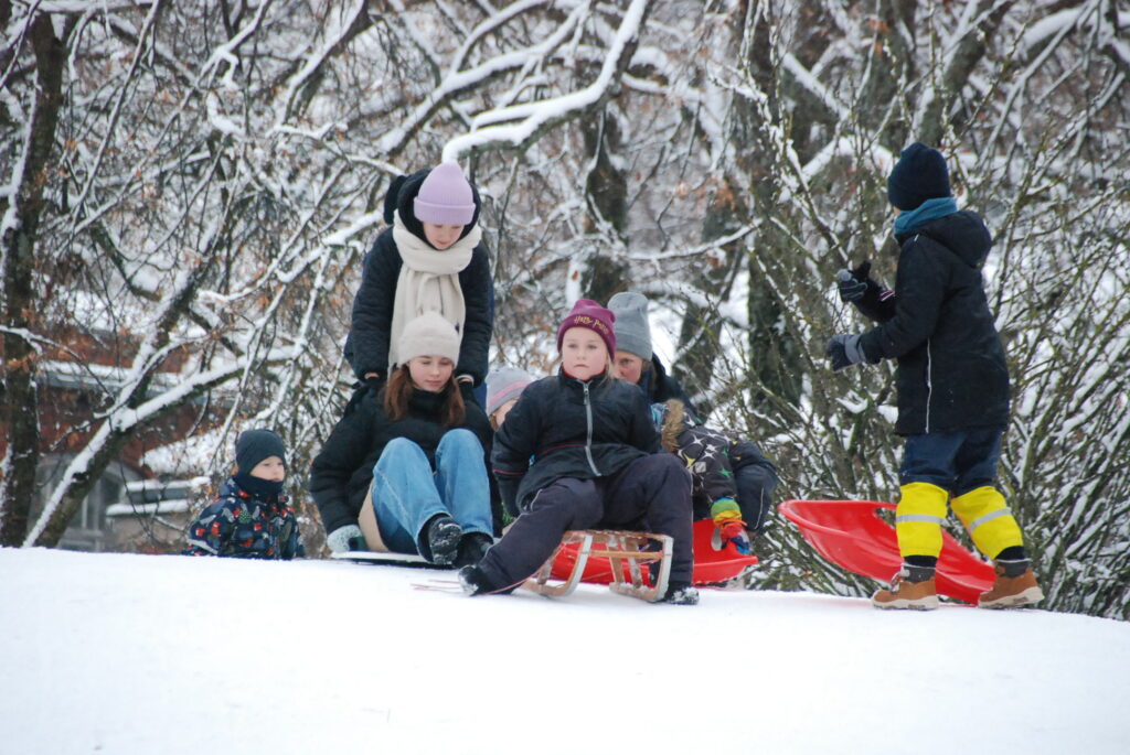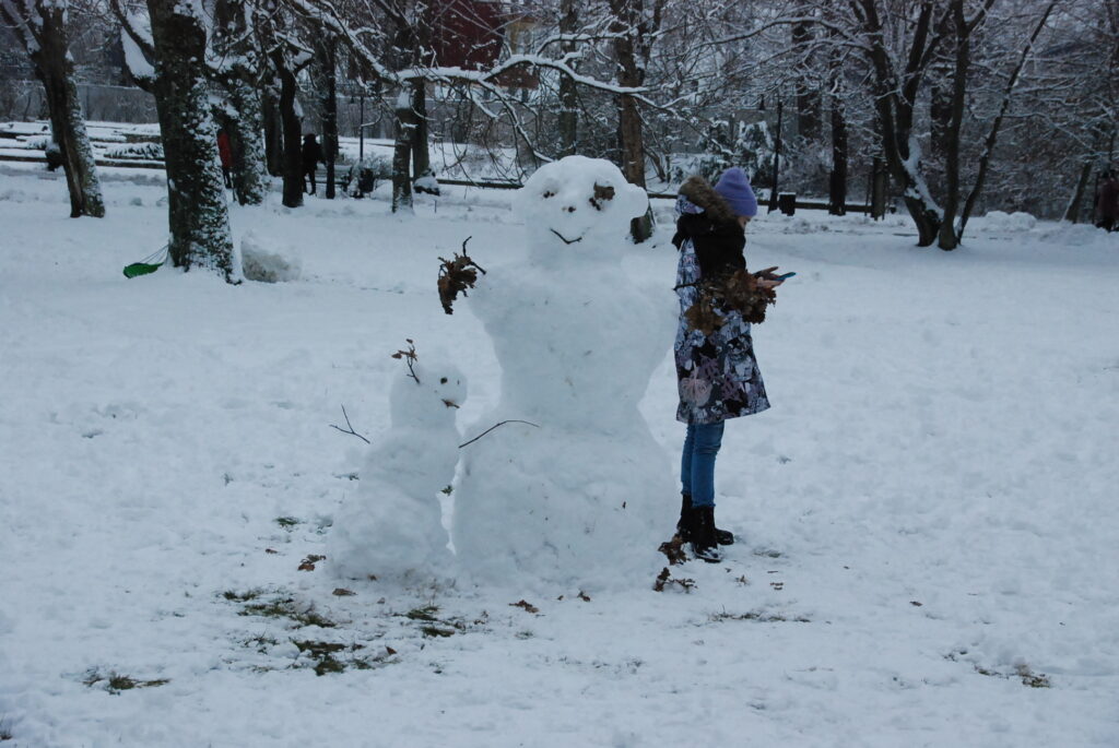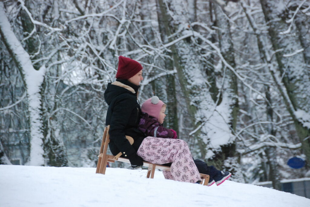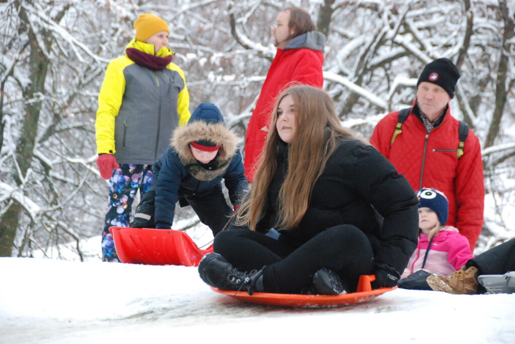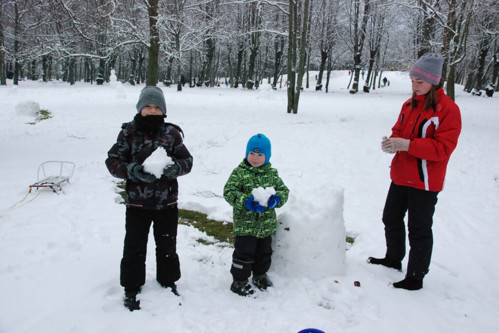 Jūrmalas parkā bērni brauca ar ragaviņām. Parkā tika velti sniegavīri, novēroja “ReKurZeme”.