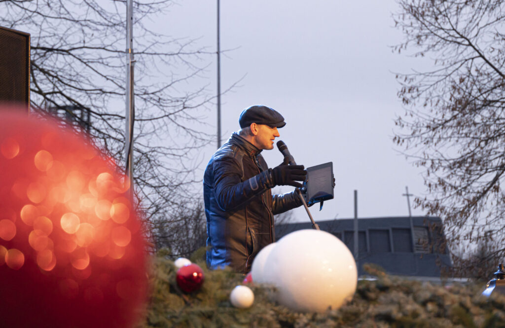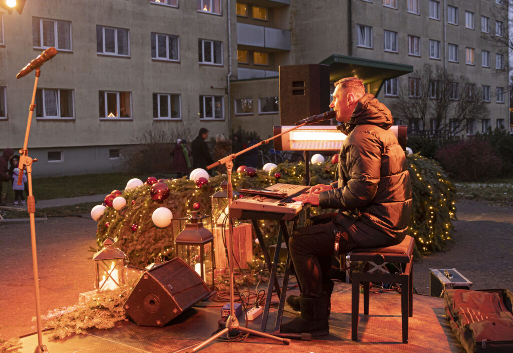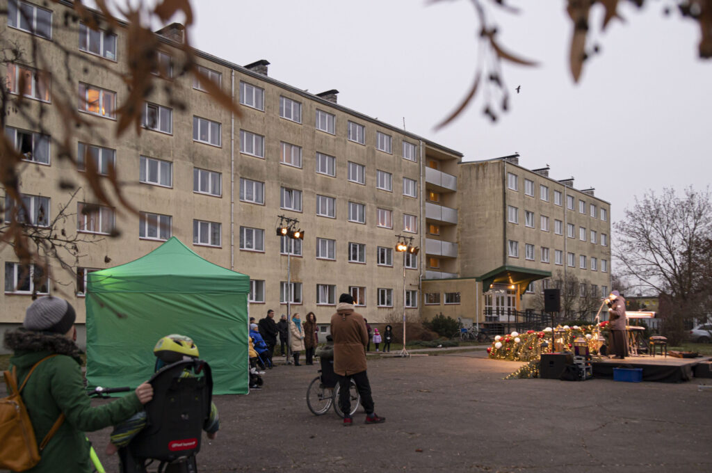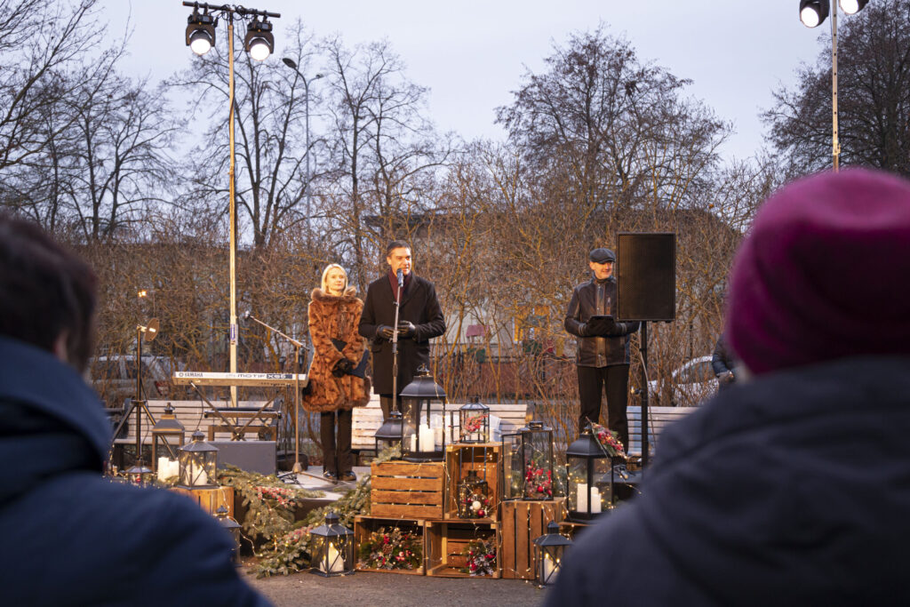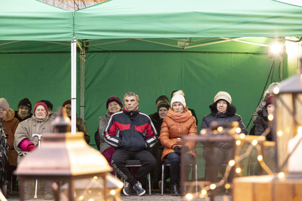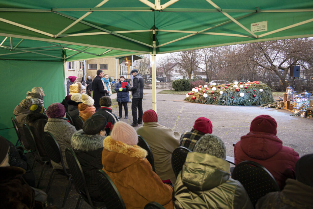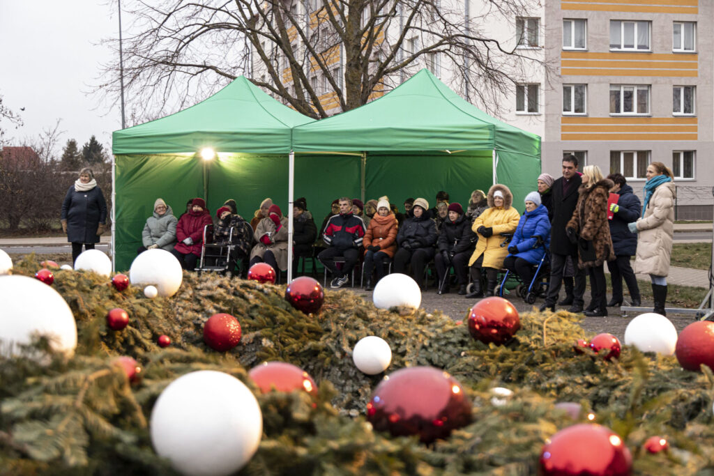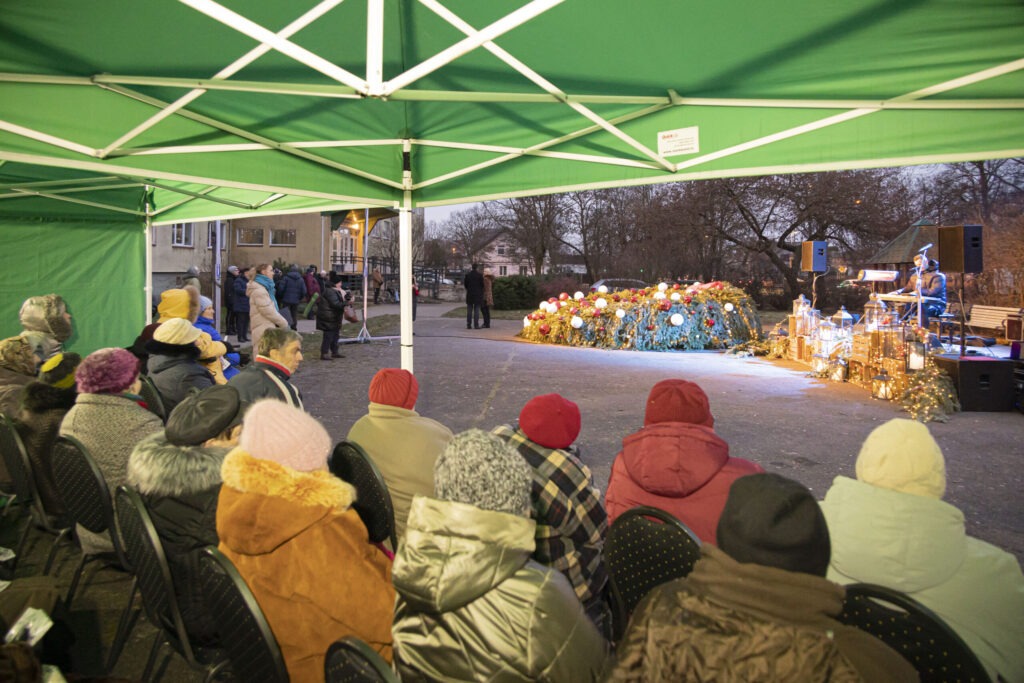 Piektdien, 25. novembrī, Liepājā tika iedegts Adventa vainags Ganību ielā 135/141 pie Veco ļaužu dzīvojamās mājas.