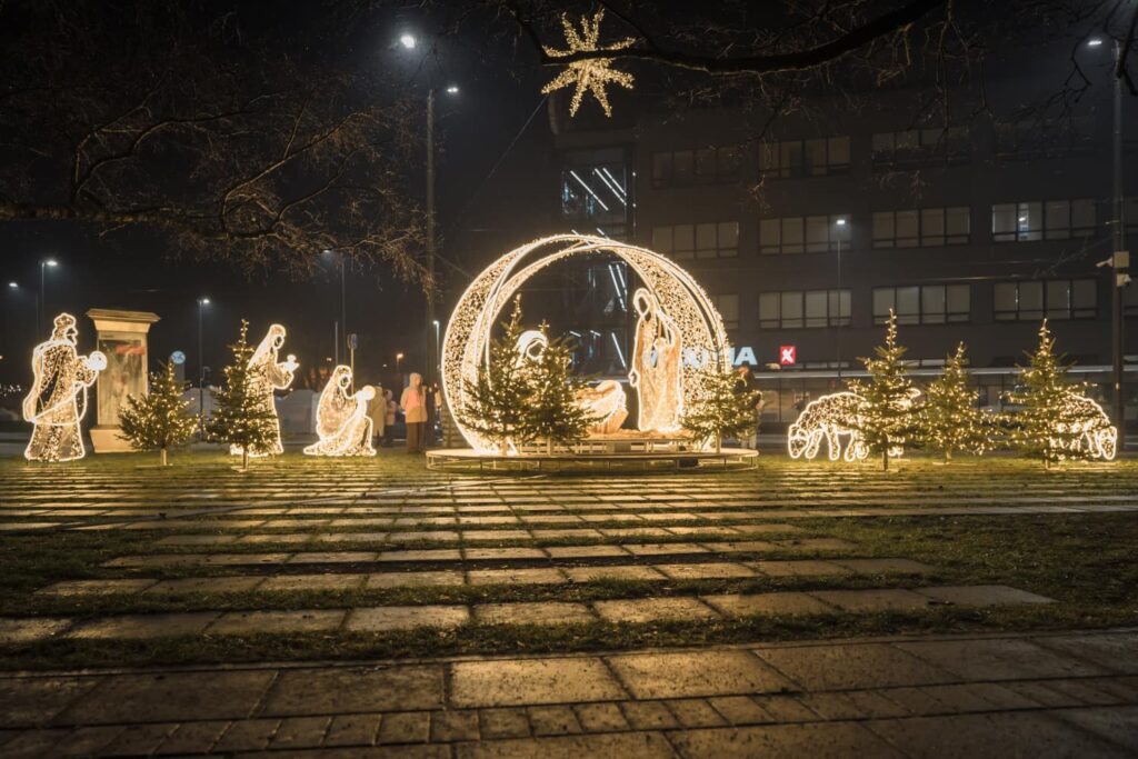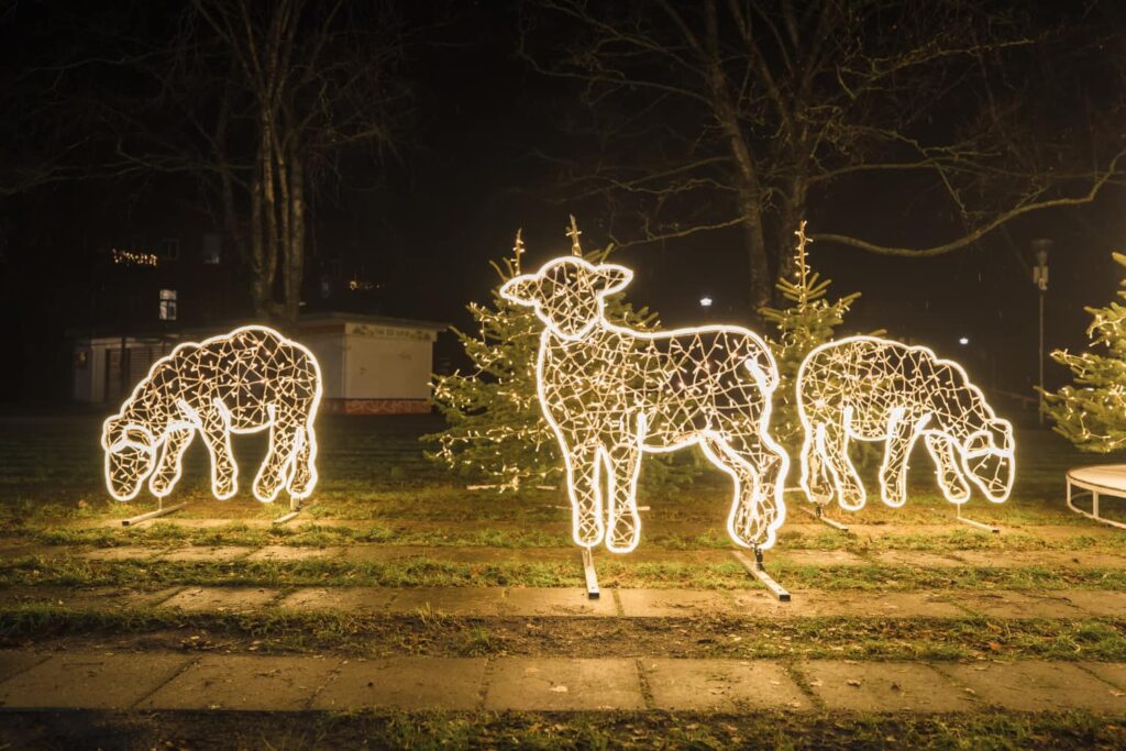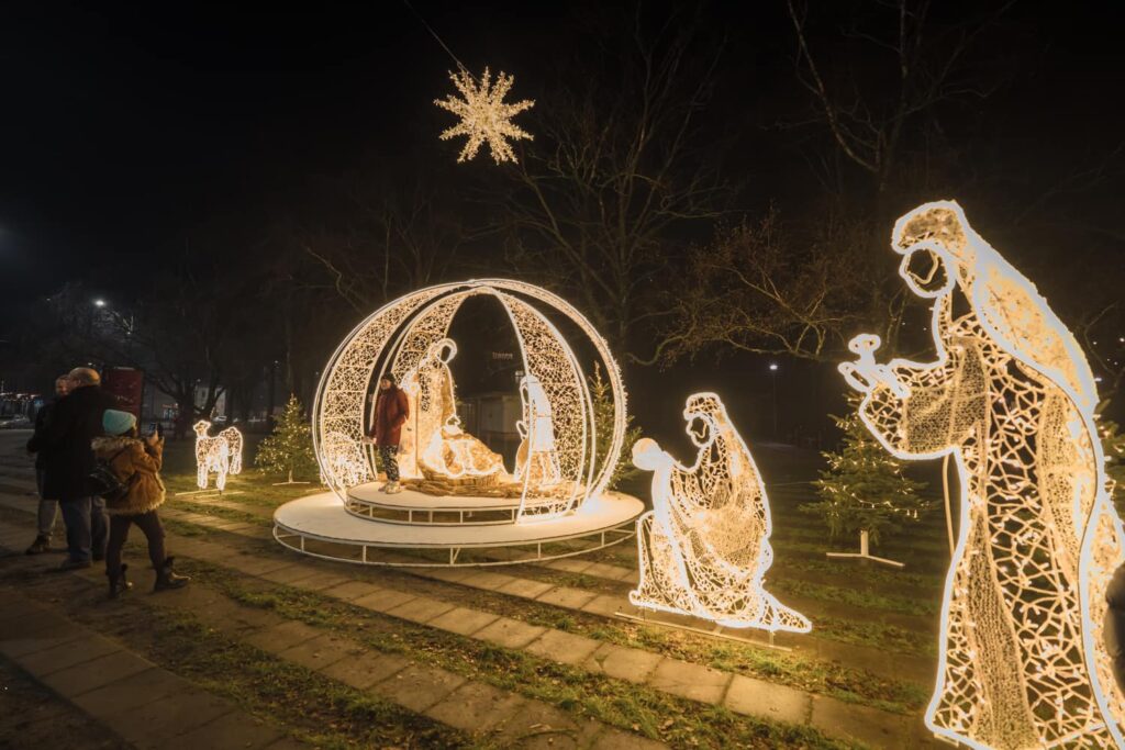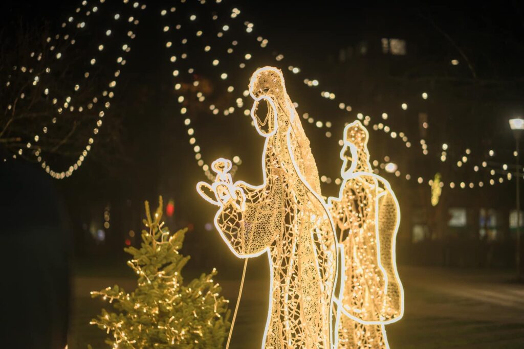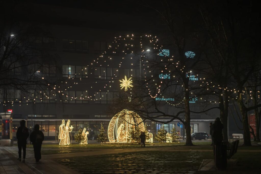 Liepājā, Kurzemes skvērā, iedegts jauns vides objekts “Betlēmes stāsts” – pirms tam jau bija izvietota lielā arka un zvaigzne, tagad gaismās iemirdzējušies arī pārējie tēli un silīte!