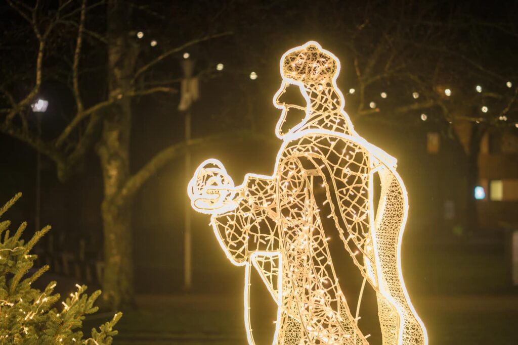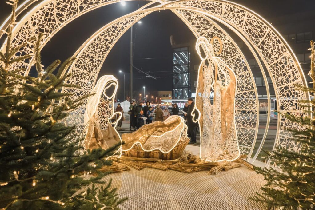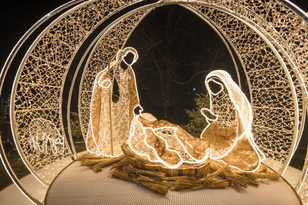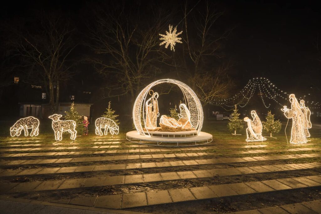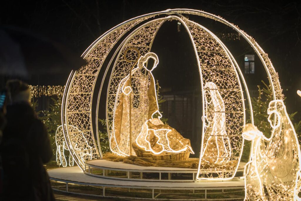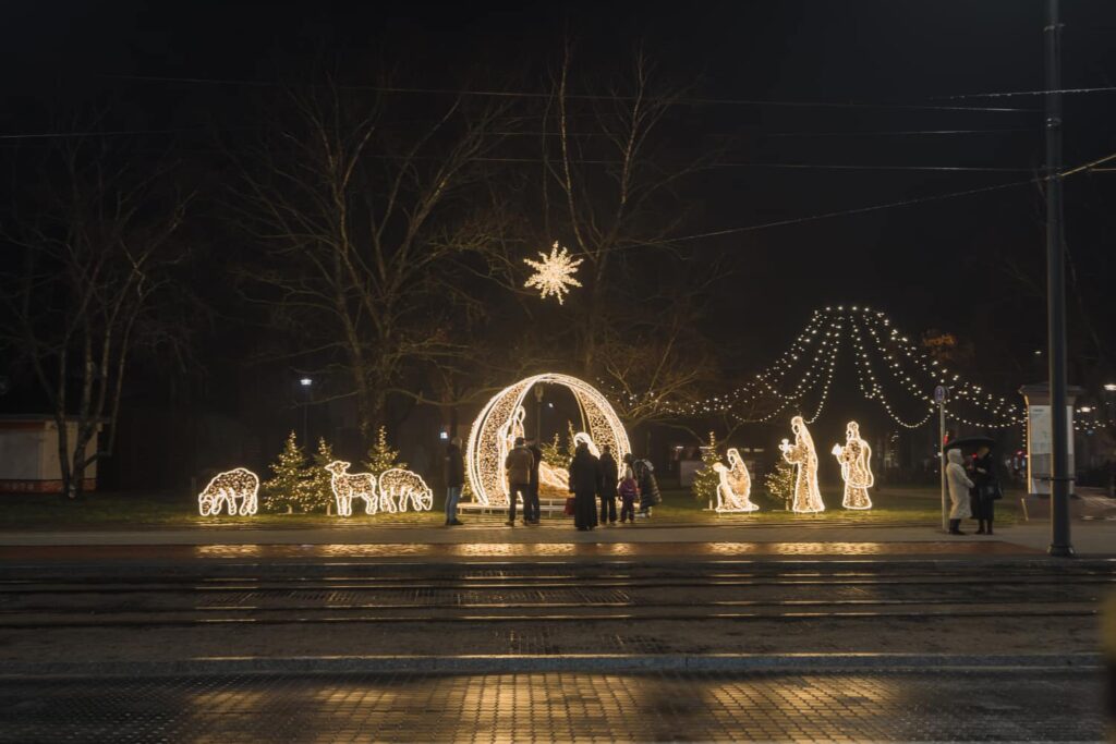 Liepājā, Kurzemes skvērā, iedegts jauns vides objekts “Betlēmes stāsts” – pirms tam jau bija izvietota lielā arka un zvaigzne, tagad gaismās iemirdzējušies arī pārējie tēli un silīte!