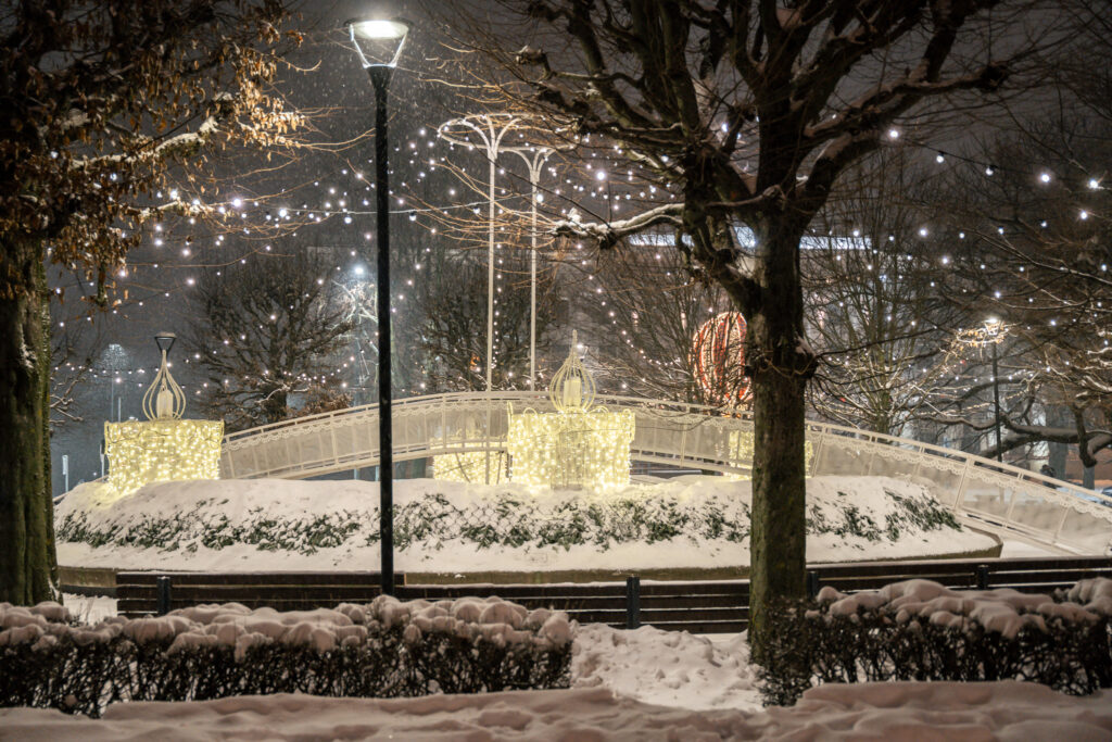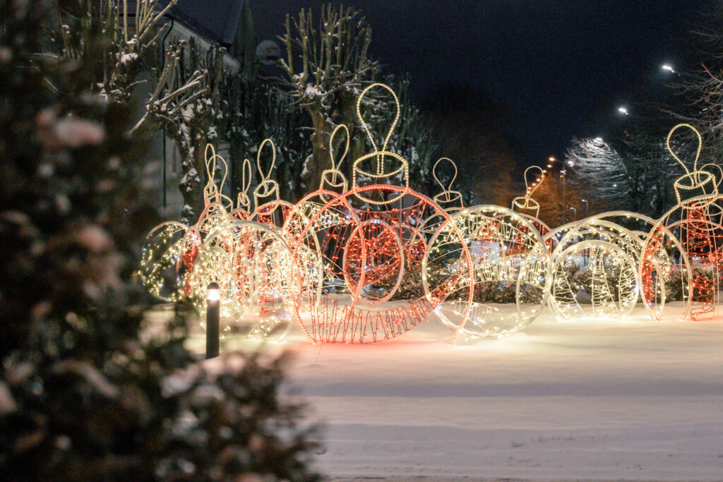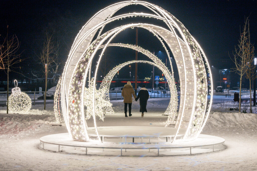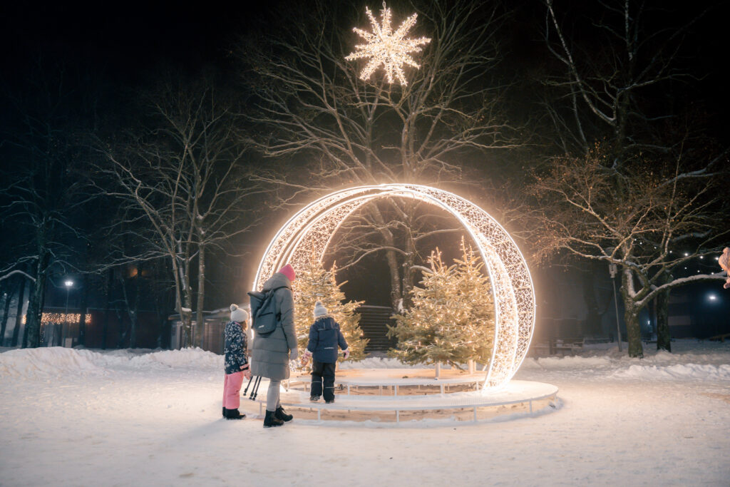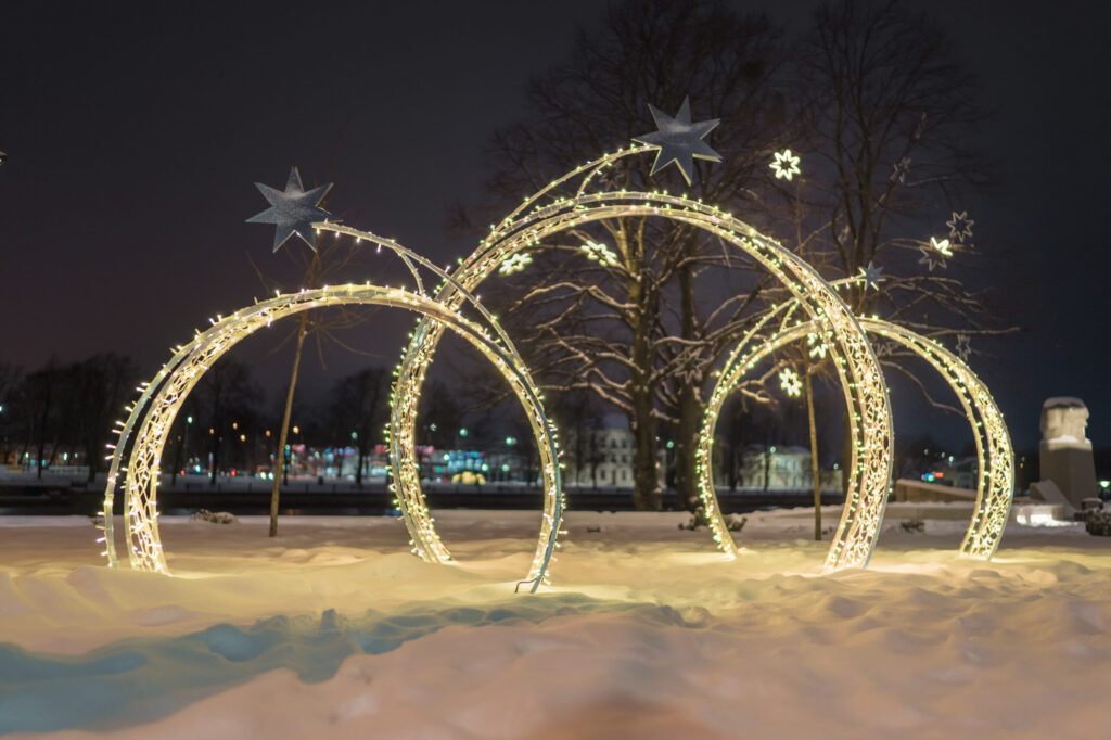 • Kāļa Zāles laukumā uzstādīti vairāki gaismas loki, kuriem var izstaigāt cauri un uzņemt skaistas svētku noskaņas bildes.