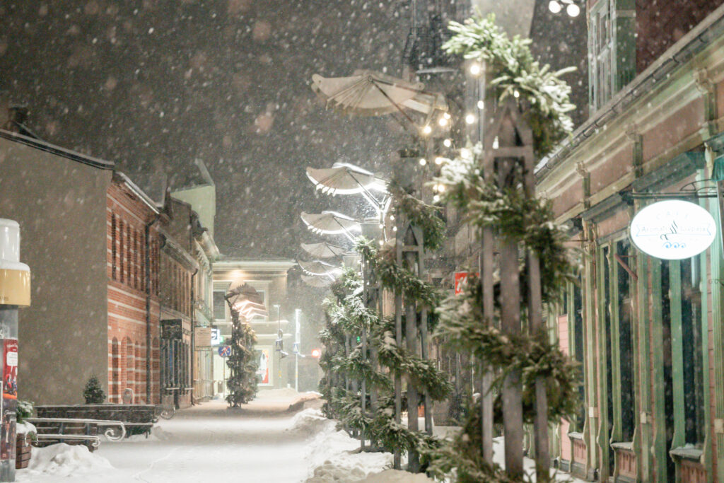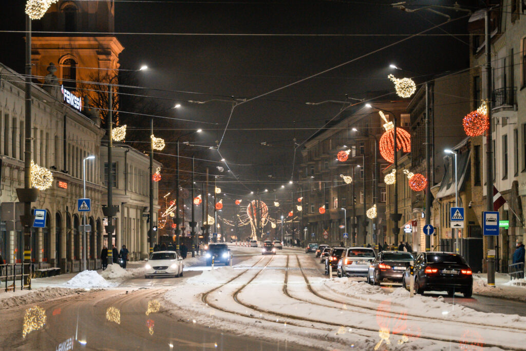 • Dodoties pa Tirgoņu ielu, noskaņa tajā radīta ar skuju virtenēm un spuldzītēm.