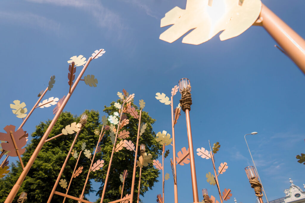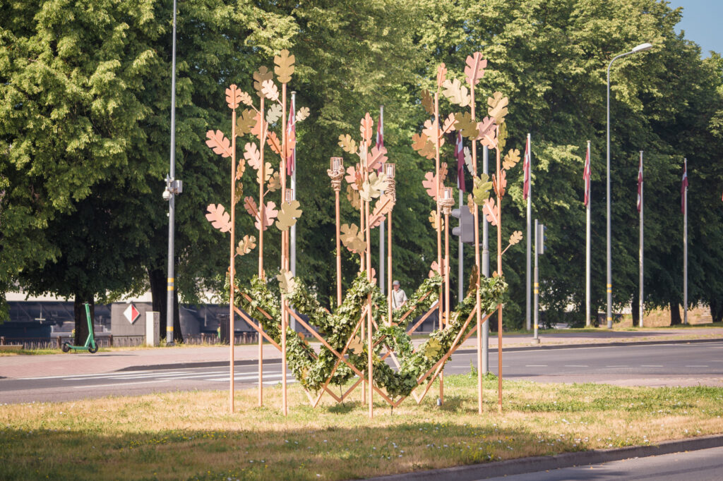Liepājā šī gada rotājumos uzsvērts, ka Jāņi ir viena no tradīcijām bagātākajām senlatviešu svētku dienām. Pilsētas rotājumos satiekas ausekļa zīme un ozollapas, kuras laistās zelta toņos. Latviešu tautas kultūrā ozols ir spēka un auglības simbols, bet auseklis pazīstams kā aizsardzības zīme, simbolizējot gaismas cīņu ar tumsu.
